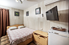 Двуспальная кровать, диван-кровать, кресло, шкаф, туалетный столик, стул, два кондиционера, два телевизора, санузел (душ+туалет),стиральная машина, туалетные принадлежности, гладильная доска, утюг, КУХНЯ (газовая поверхность, микроволновая печь, чайник, п