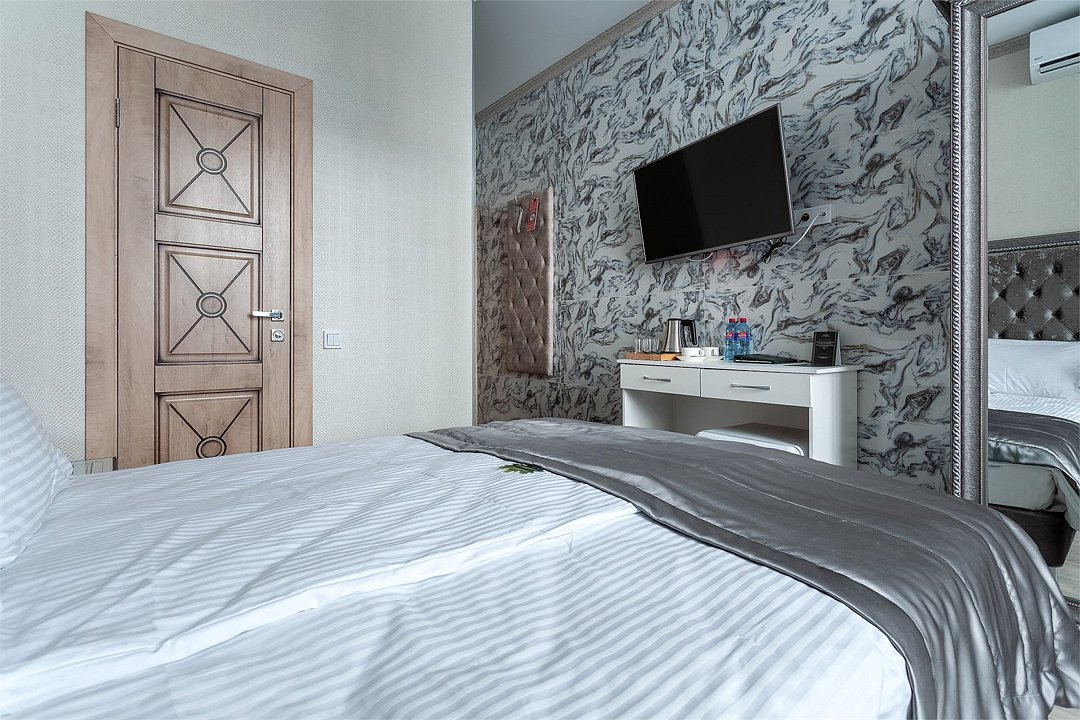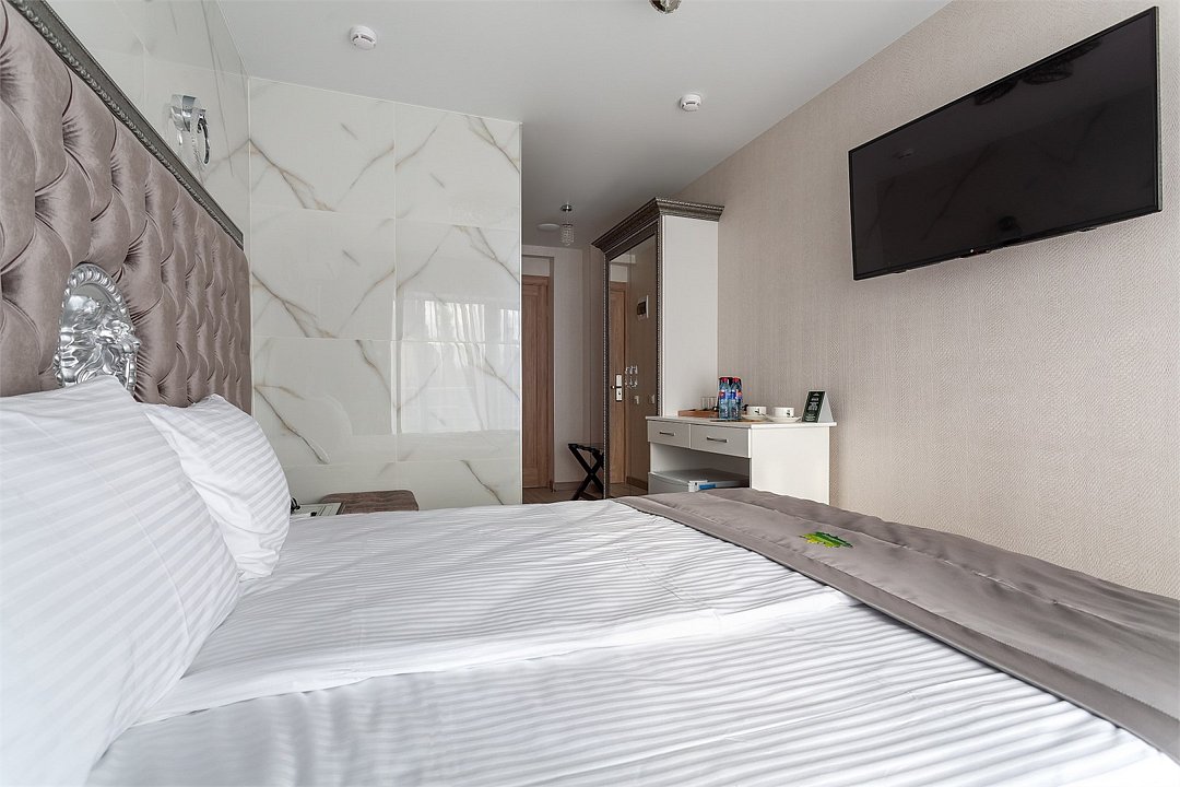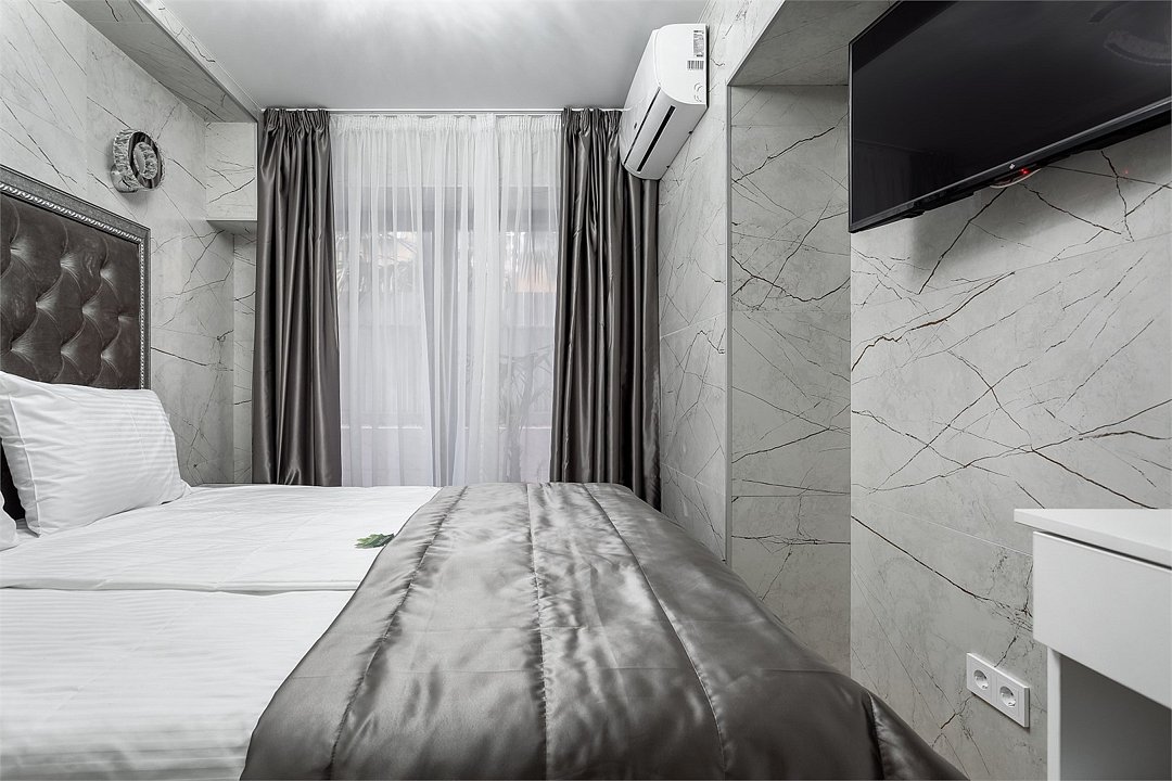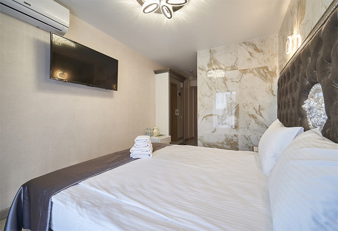 Уютный двухместный номер с современным дизайном. В нем есть все необходимое для комфортного отдыха: кровать, телевизор, wi-fi, кондиционер, душ, набор полотенец.Услуги и удобства