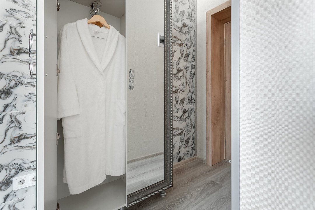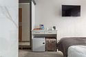 телевизор, Wi-Fi, фен, ванная комната, санузел, банные полотенца, пляжные полотенца, тапочки, гигиенические средства, балкон, двуспальная кровать, две односпальные кровати, шкаф для одежды, вешалки, зеркало, обслуживание номеров, сейф, чайник, раковина, душ, кулер на этаже, стаканы, тумба, туалетные средства, сплит-система, внутренний телефон, мини-холодильник, рабочий стол, уборка номера, набор для приготовления чая и кофе, СПА, мылоВ гостиничном номере