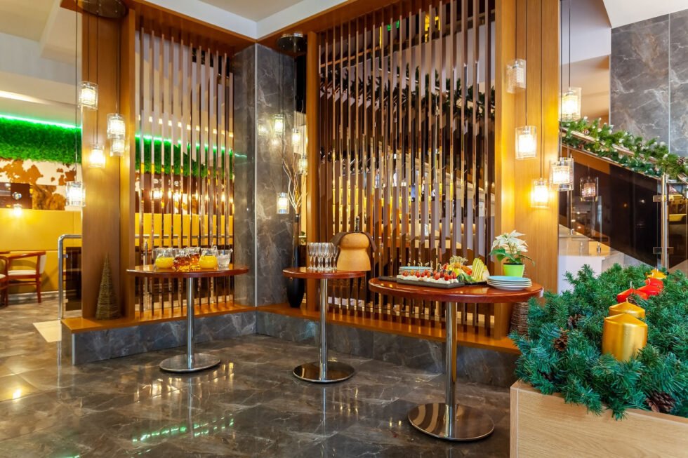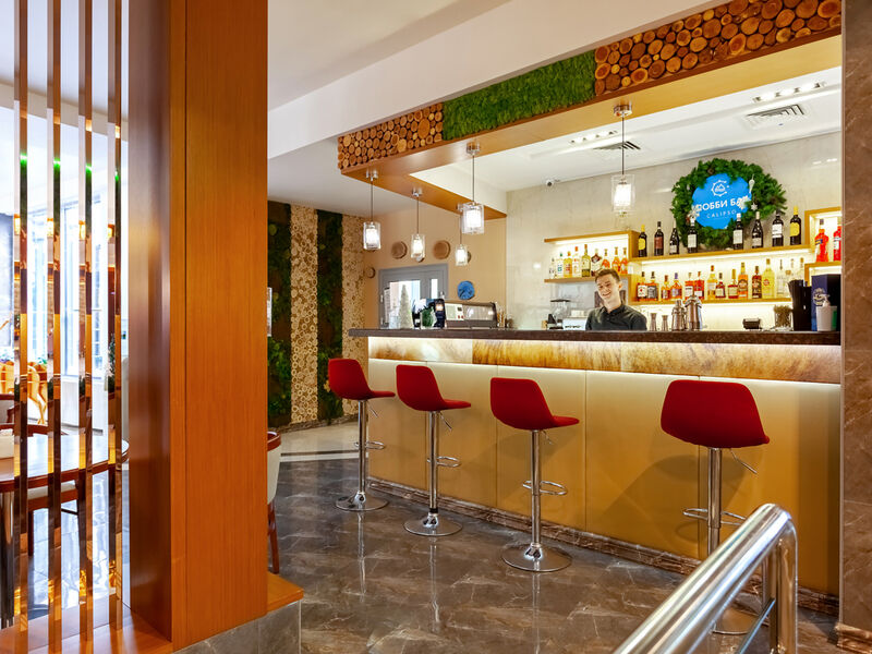 Ресторан способен принять до 70 посетителей и выполнен в стиле современной элегантности, с преобладанием светлых и гармоничных цветов. Атмосфера здесь способствует расслабленному отдыху и спокойному общению. В меню представлены кулинарные шедевры, объединяющие изысканный вкус с эстетическим оформлением, а широкий выбор напитков делает кулинарный опыт еще более насыщенным. Это идеальное место для проведения уютных встреч и наслаждения теплыми моментами в кругу друзей и близких.
