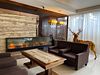 Просторный однокомнатный номер, разделенный на несколько зон, с большой двуспальной кроватью, широким раскладным диваном и панорамным окном с видом на горные вершины.
