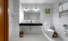 Светильник, ванна, багажная тумба.