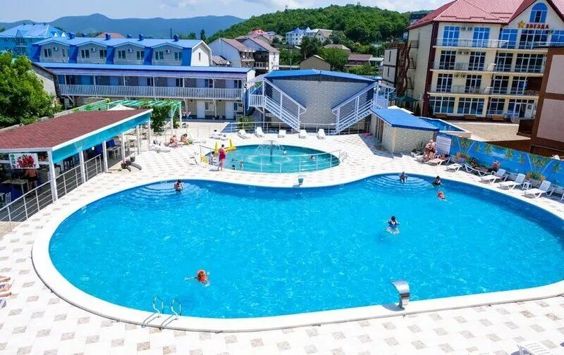 На территории отеля есть всё,экскурсии,бар,фонтан,детская площадка,парковка,столовая,мангал,качели,все что нужно для хорошего отдыха!