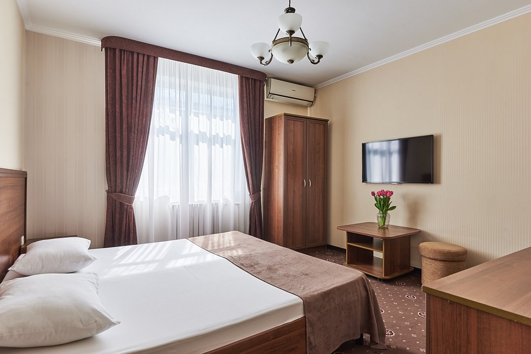 Гостевой дом состоит из одного корпуса с лифтом, предлагает комфортное проживание в комнатах различных категорий, оборудованных бесплатным Wi-Fi. На территории также доступен интернет, что позволяет оставаться на связи даже во время отдыха.