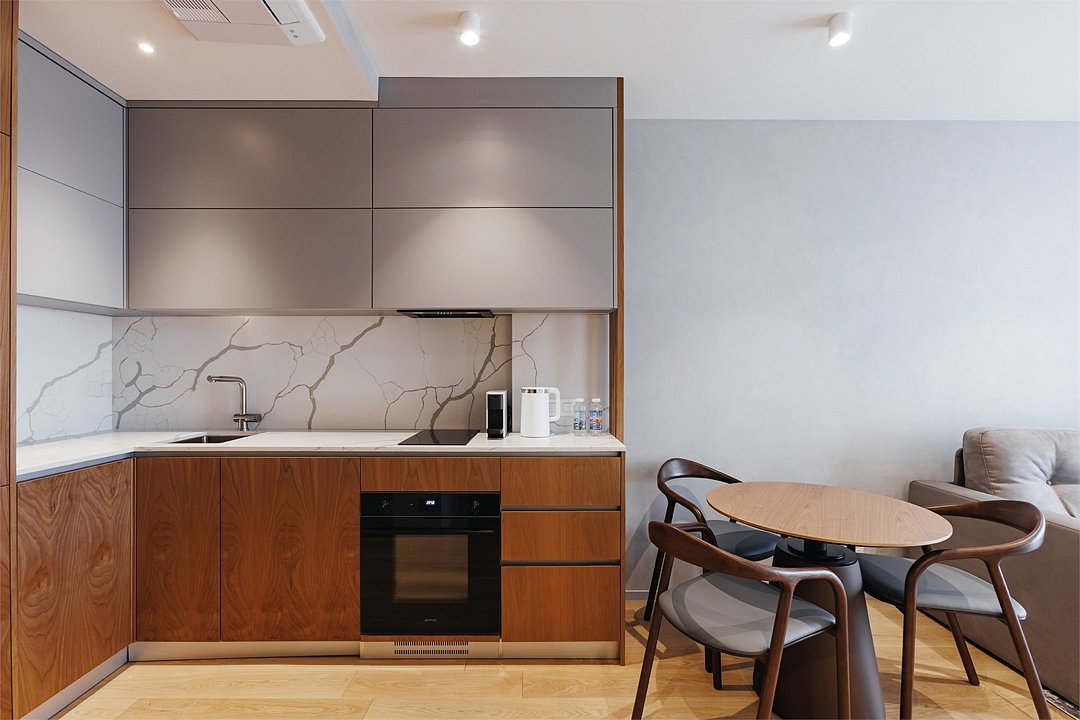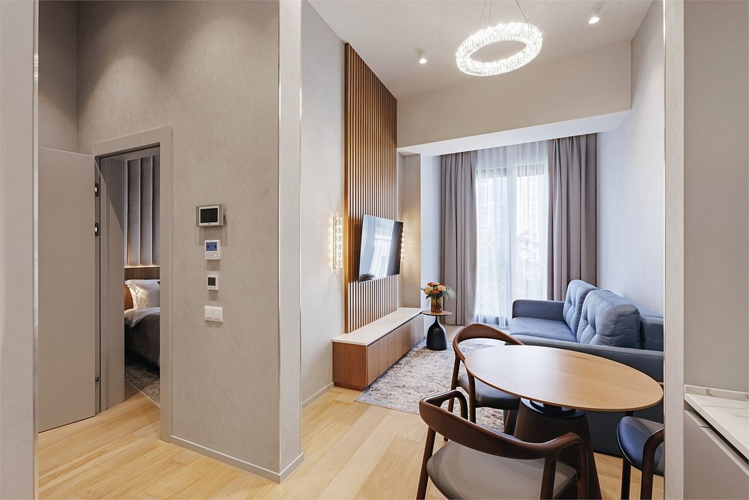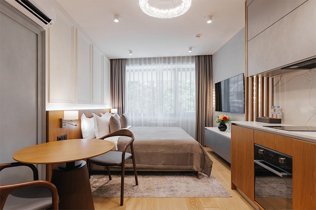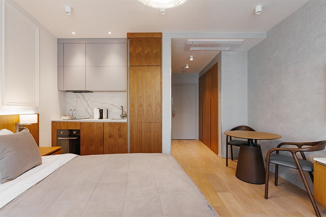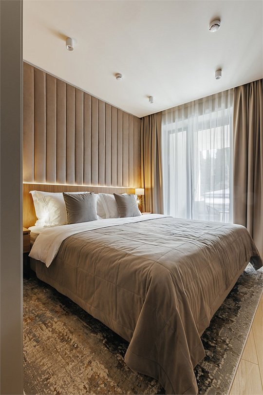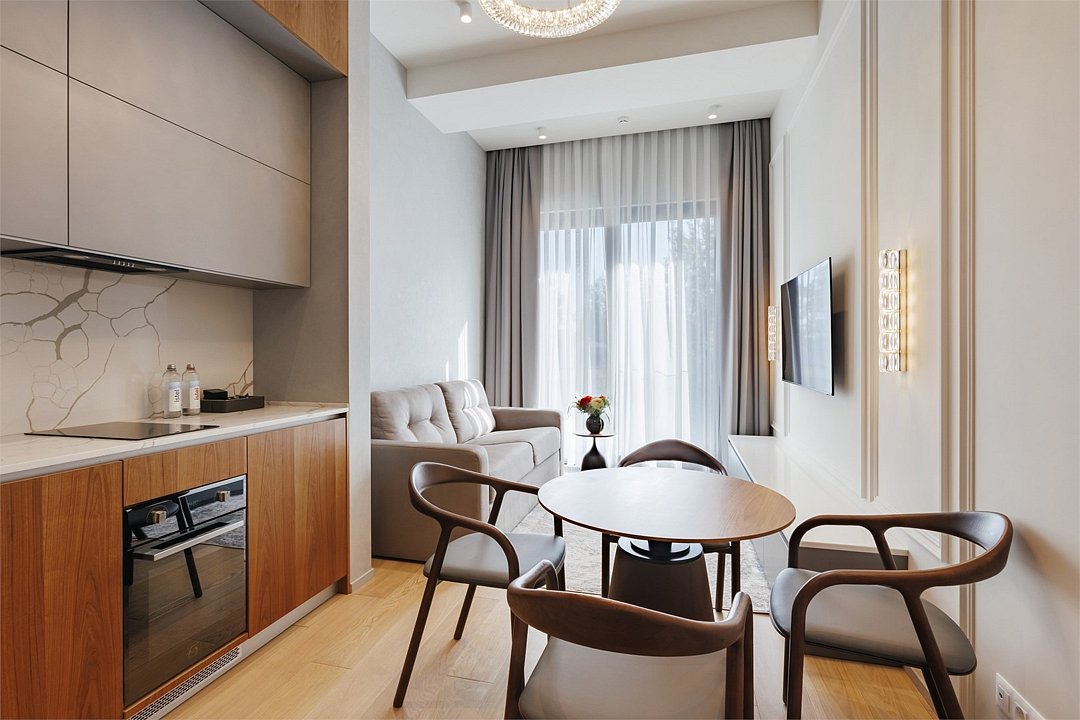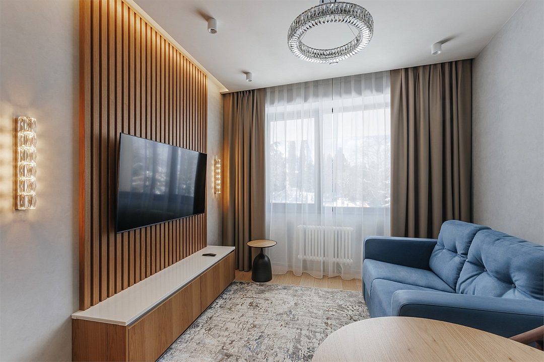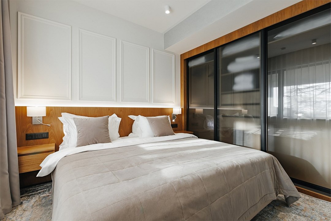 Номер категории Представительский люкс подарит вам возможность не только максимально комфортно разместиться всей семьей, но и наслаждаться простором номеров. Комплектация каждого номера в данной категории состоит из двух спален, кухни-гостиной, ванной комнаты. Идеальный вариант для длительного комфортного отдыха или проживания. В номерах данной категории имеется раскладной диван с размером спального места 1*1,9 м. В Представительском люксе можно разместить до 5 гостей. Один ребёнок до 3 лет включительно — может разместиться без дополнительного спального места. По запросу предоставляется детская кроватка. Каждый из дизайнерских номеров выполнен в индивидуальном стиле и может отличаться от предоставляемых фотографий.Услуги и удобства