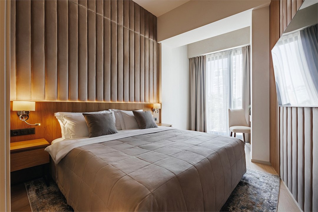 Номера категории Двухкомнатный люкс с двумя спальнями можно смело рекомендовать для длительных периодов проживания. Если вы приехали в Сочи на весь период отпуска или работаете удаленно и решили обосноваться с максимальным комфортом в городе с мягким климатом вдали от столичной суеты, то именно Двухкомнатный люкс подарит вам и вашим близким максимум комфорта. Две отдельные спальни идеальны для размещения двоих взрослых гостей в каждой из них, а зона кухни-гостиной может служить для вас как рабочей зоной, так и местом встречи с близкими после насыщенного дня за ужином. В номерах данной категории также имеется раскладной диван с размером спального места 0,85*1,9м. Номер предусмотрен для проживания 4 взрослых и 1 ребенка до 12 лет включительно. Один ребёнок до 3 лет включительно — может разместиться без дополнительного спального места. По запросу предоставляется детская кроватка. Каждый из дизайнерских номеров выполнен в индивидуальном стиле и может отличаться от предоставляемых фотографий.Услуги и удобства