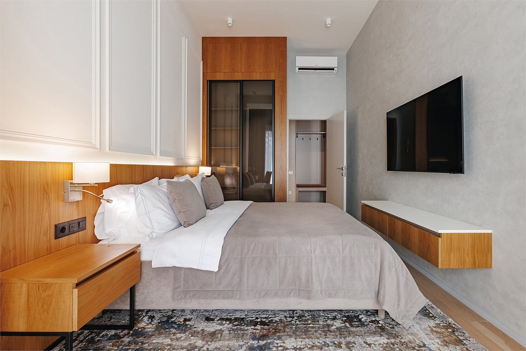 два телевизора, кабельное телевидение, Wi-Fi, телефон, холодильник, система климат-контроля, светильник, настольные лампы, фен, система безопасности, электронные замки, плита для приготовления пищи, кофемашина, утюг, санузел, халаты, банные полотенца, тапочки, гигиенические средства, косметические средства, балкон, кровать «King size», шкаф для одежды, зеркало, две комнаты, кухня, чайный набор, набор посуды, обслуживание номеров, информационная карта, меню, сейф, стиральная машина, чайник, унитаз, раковина, косметическое зеркало, гостиная зона, душ, вид на море, центральное кондиционирование, меню подушек, кухонная посуда, стаканы, кухонная утварь, столовые приборы, кофейный столик, туалетные средства, диван-кровать, гостиничная парфюмерия, номер для некурящих, духовка, уборка номера, набор для приготовления чая и кофе, вешалки-плечики, бутилированная вода, шапочка для душа, мыло, затемняющая штора, прачечная (за дополнительную плату), можно с питомцамиВ гостиничном номере