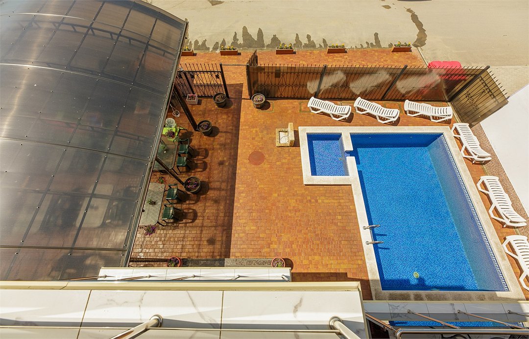 Большой просторный номер , со всеми удобствами в номере. Расположен номер на первом этаже, Без балкона. Окно с видом на передний двор где находится терраса и бассейн .Услуги и удобства