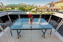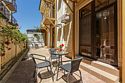 кабельное телевидение, Wi-Fi, интернет, холодильник, кондиционер, фен, банные полотенца, балкон, двуспальная кровать, односпальная кровать, кресла, шкаф для одежды, обеденный стол, зеркало, пуфики, чайник, душ, кресло, вид во двор, высокие потолки, стул, туалетный столик, туалет, телевизор с плоским экраном, пуфикВ номере