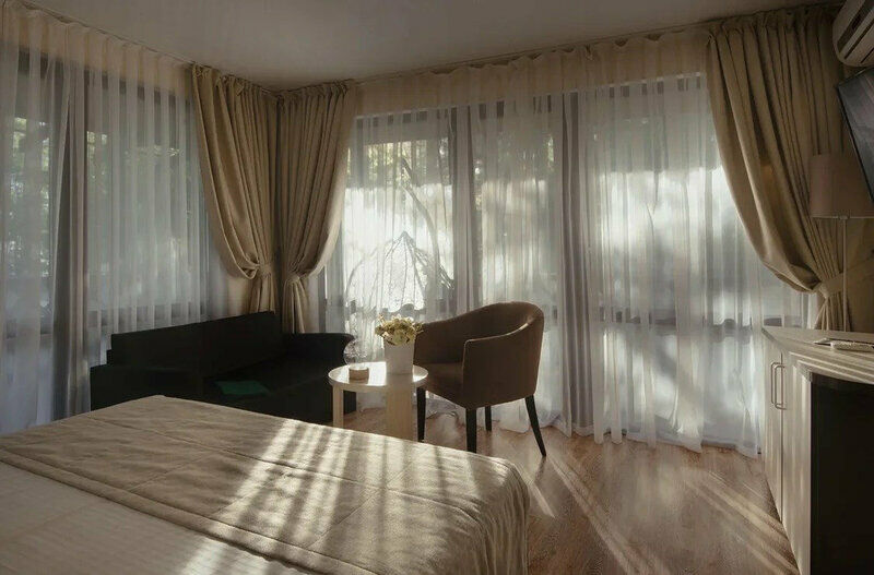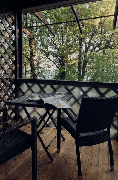 Просторные и светлые номера с лаконичным интерьером с двухспальной кроватью и террасой (балконом). Все номера имеют прихожую, рабочую и спальную зоны, ванную комнату. Из больших окон открывается панорамный вид на лес. Находится на первом или втором этаже комплекса. Открытые балконы оборудованы креслами из ротанга и столиком, который может быть сервирован по вашему желанию. Площадь номера 25 м2. Здесь каждая деталь продумана с учетом вашего комфорта: от свежих хлопчатобумажных простыней до мягкого приглушенного освещения. Не забывайте о роскошных мелочах, таких как выбор подушек для безмятежного сна. В номере: Кровать размера 160х200 см, прикроватные тумбочки, шкаф для одежды, мини-холодильник, сейф. ЖК-телевизор. Принадлежности для приготовления чая или кофе. Туалет, душевая кабина, фен, средства для ванной премиум-качества. Халаты и тапочки, полотенца. Детская кроватка (по запросу). Завтраки включены в стоимость проживания.