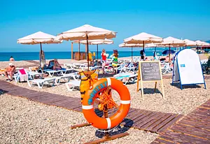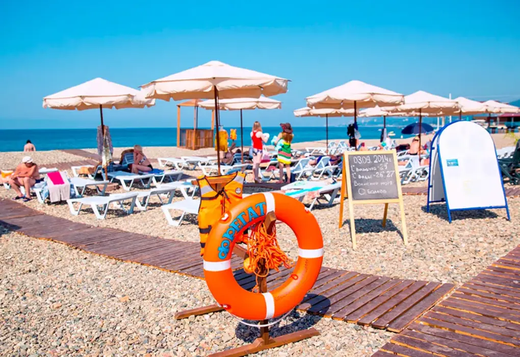 Тип пляжа: галечный, городской, оборудованныйИнфраструктура: лежаки, зонтики, шезлонгиРасположение: в пешей доступностиВ 100 метрах находится прекрасно оборудованный пляж Фрегат-Бич, где предлагается множество развлечений для взрослых и детей: прокат скутеров и катамаранов, катание на «банане», дайвинг и полеты на парашюте. На побережье есть летние кафе, раздевалки и душевые, лежаки и навесы.