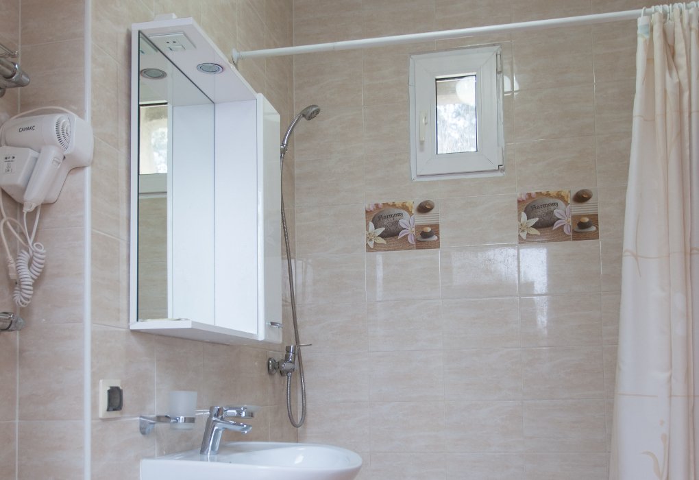 с/у, душ, (TWIN или DBL), шкаф для одежды, тумбы, зеркало, холодильник, спутниковое телевидение, сплит система, фен, доп. место (кресло-кровать или диван).