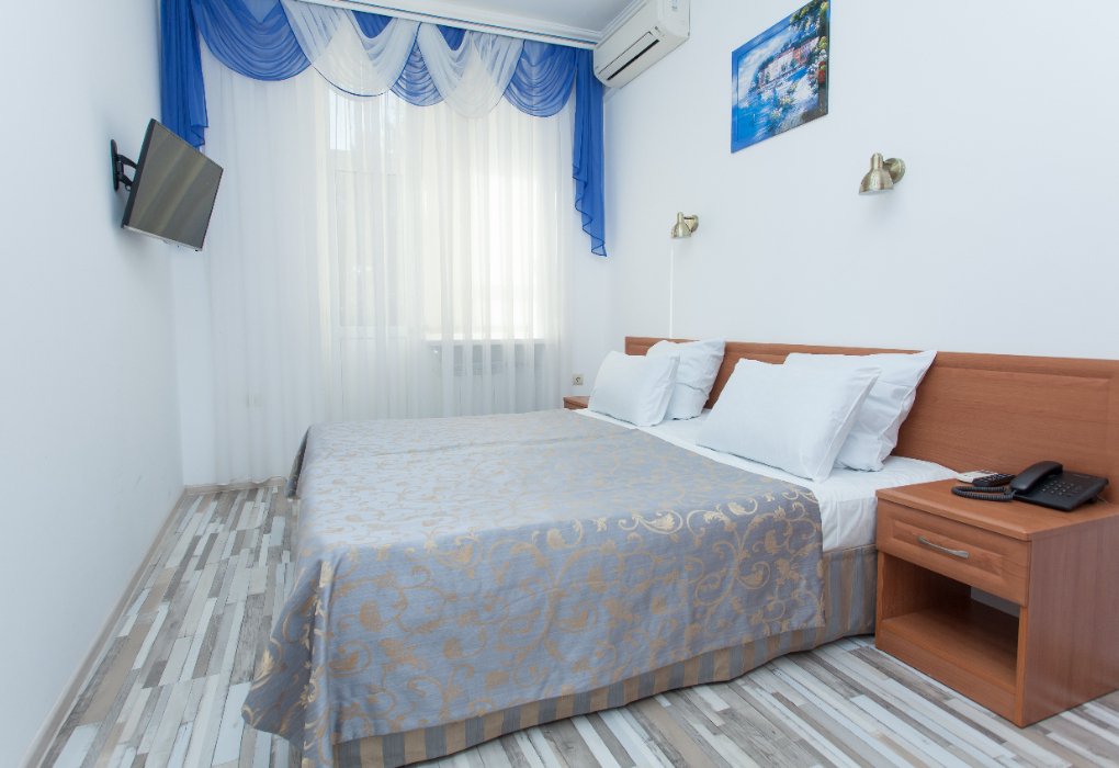 с/у, душ, (TWIN или DBL), шкаф для одежды, тумбы, зеркало, холодильник, спутниковое телевидение, сплит система, фен. По согласованию возможно доп. место (евро раскладуш