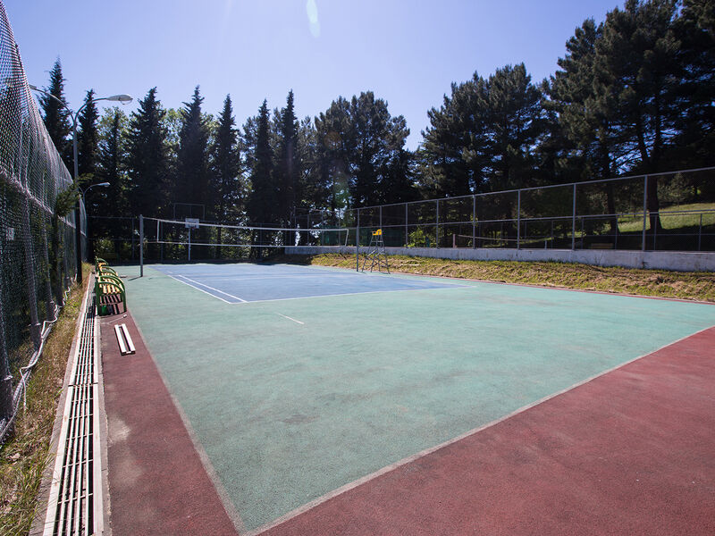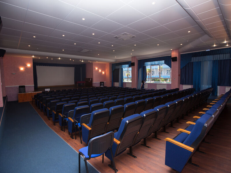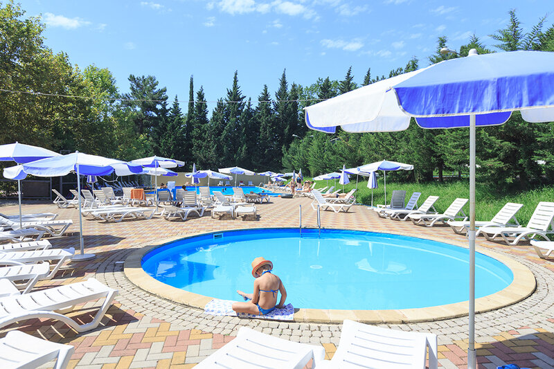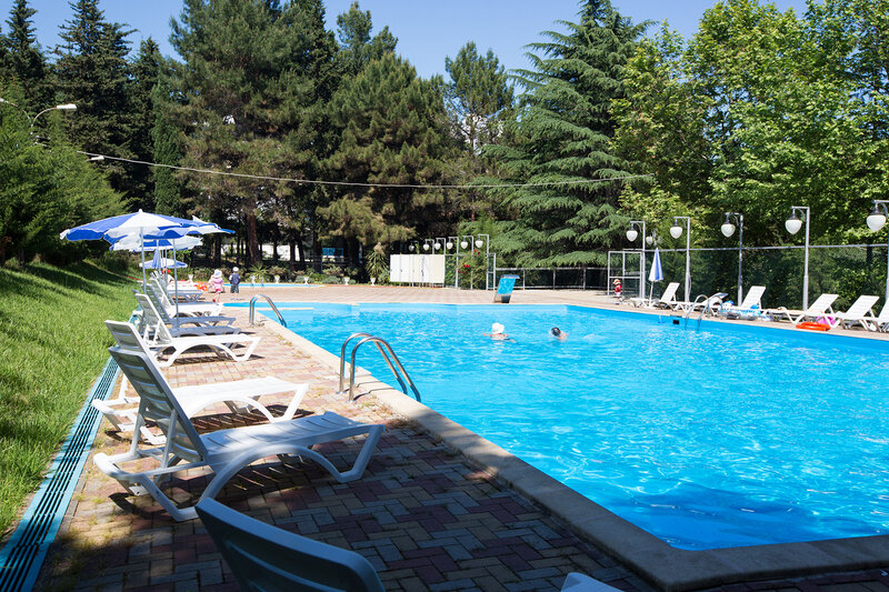 К услугам клиентов пансионата – огромный открытый бассейн площадью в 370 кв метров, и ещё один детский, крытый зал тренажёров и спортивные площадки: 2 баскетбольные, волейбольная, для стритбола, теннисный корт, фитнес и настольный теннис, заботы инструкторов, обслуживание косметологом и массажиста. Для более спокойного времяпровождения они могут воспользоваться возможностями кинозала, библиотеки, караоке, бильярда, посмотреть концерт или заказать экскурсию. Для отдыхающих бизнесменов имеется в наличии обширный, отлично оснащённый конференц-зал.
