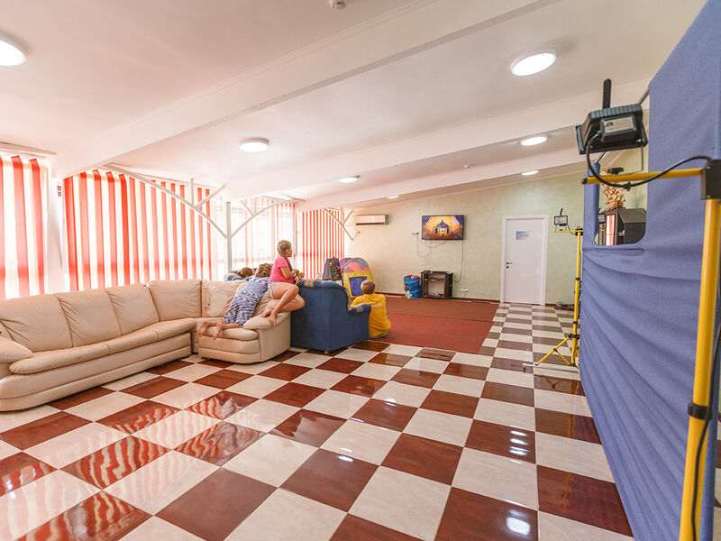 В инфраструктуре пансионата учтены интересы самых маленьких постояльцев: кроме детского бассейна, в их распоряжении – видеозал, игровые площадки и комнаты – в том числе, с воспитателем, проведение детских анимаций.