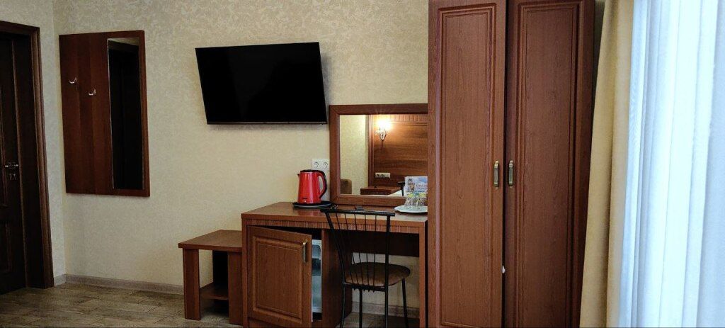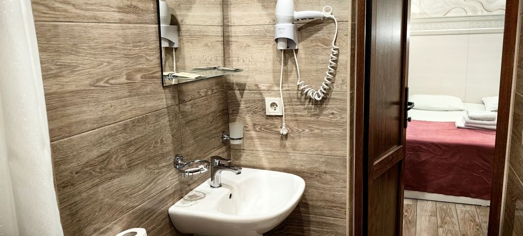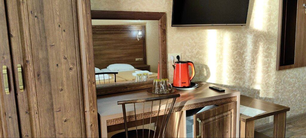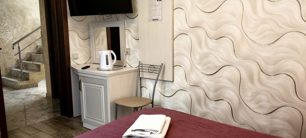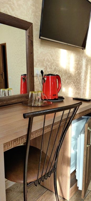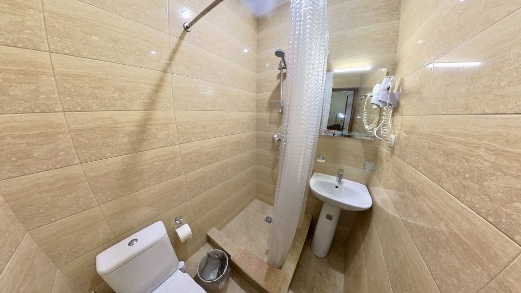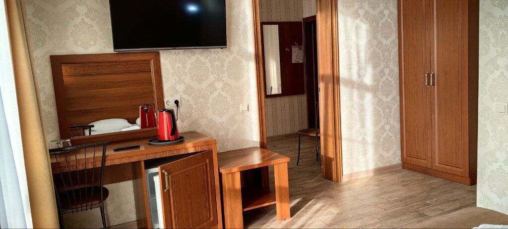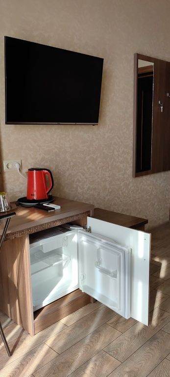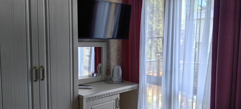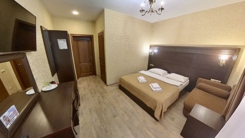 Комната предназначена для проживания двух человек. Комната выполнена в современном стиле и спокойных цветовых тонах, оборудована всем необходимым: чайник, чайная пара, холодильник, кондиционер, что позволяет гостям чувствовать себя комфортно и наслаждаться всеми прелестями пребывания на отдыхе.