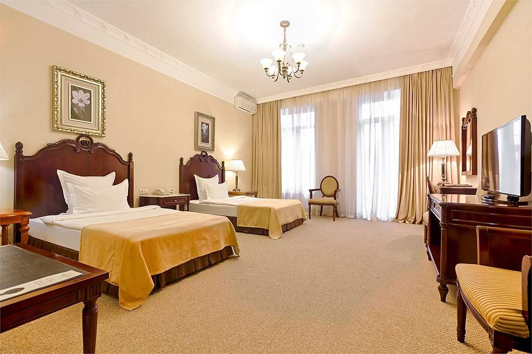 Просторные комфортабельные номера площадью от 31 до 34 кв.м. со всеми современными удобствами отличаются друг от друга элементами меблировки. Данная категория номеров выполнена в мягких пастельных оттенках. Номера данной категории расположены на первом, втором и третьем этажах отеля.Услуги и удобства