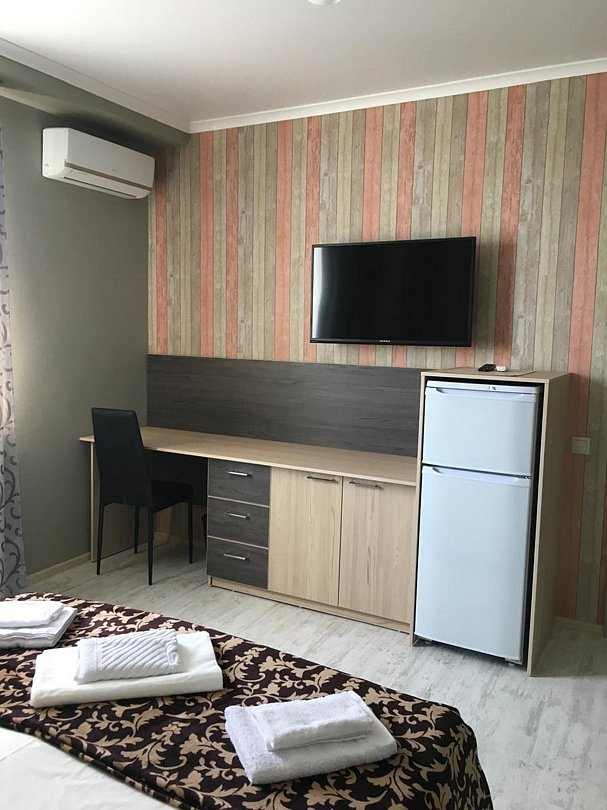 В каждом номере имеется сплит-система для вашего комфорта, телевизор для приятного вечера, холодильник, чайник. Собственная ванная комната оснащена набором полотенец и феном.