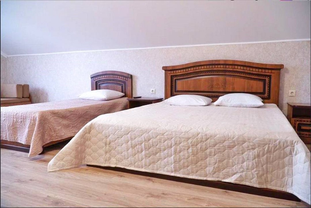 Трех местный номер, расположена в гостевом доме "Вардане". В номере есть двуспальная кровать и одна односпальная кровать, имеется телевизор и кондиционер. Санузел расположен в номере. Подходит для проживания трех гостей. На территории гостевого дома находиться общая кухонная зона.