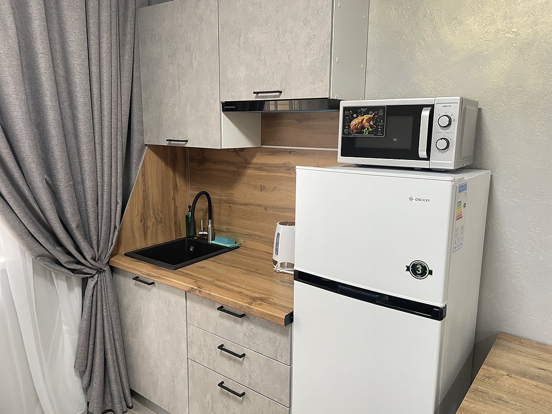 номер Стандарт - Свежий ремонт и стильный дизайн интерьера обеспечат вам уют и гармонию - Ваше пребывание будет еще более приятным благодаря наличию собственного холодильника, микроволновой печи и электрического чайника. - Душевая комната, где вы найдете все необходимые принадлежности для комфортного и приятного принятия душа. - Кроме того, номер Стандарт оснащен сплит-системой, которая позволит вам наслаждаться прохладой в жаркие дни и теплом в холодные вечера. - Вы не останетесь без доступа к интернету, так как Wi-Fi позволит вам оставаться на связи и работать удаленно, если это необходимо. - Вместимость до 2х человек делает наш номер идеальным выбором для семейного отдыха или деловой поездки. Не упустите возможность отдохнуть в нашем комфортном и стильном Стандартном номере и насладиться качественным сервисом!В номере