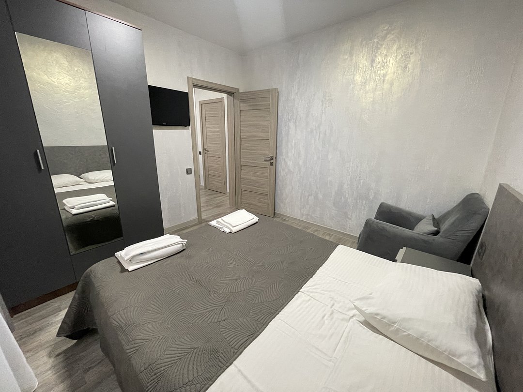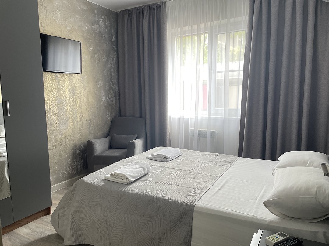 2-х комнатный Семейный - Свежий ремонт и стильный дизайн интерьера обеспечат вам уют и гармонию, а просторная площадь в 25 кв. метров позволит чувствовать себя свободно и комфортно. - Ваше пребывание будет еще более приятным благодаря наличию собственной кухни, где вы сможете наслаждаться вкусной домашней едой, не выходя из номера. - Вас ждет 1 спальня и кухня-гостиная с диваном, который легко трансформируется в дополнительное спальное место для размещения гостей. - Это идеальное решение для семей и компаний друзей, которые хотят провести время вместе и наслаждаться общением. - Душевая комната, где вы найдете все необходимые принадлежности для комфортного и приятного принятия душа. - Кроме того, Семейный номер оснащен сплит-системой, которая позволит вам наслаждаться прохладой в жаркие дни и теплом в холодные вечера. - Вы не останетесь без доступа к интернету, так как Wi-Fi позволит вам оставаться на связи и работать удаленно, если это необходимо. - Вместимость до 4 человек делает наш номер идеальным выбором для семейного отдыха или деловой поездки. Не упустите возможность отдохнуть в нашем комфортном и стильном двухкомнатном Семейном номере и насладиться качественным сервисом! Во дворе имеется бесплатная автомобильная парковка (на две машины).В номере