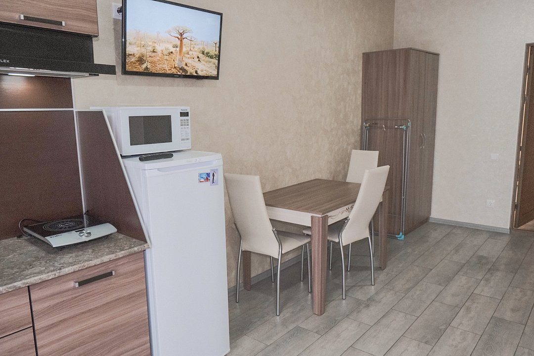 Представляем Вам Апартамент-студию! Идеальный выбор для комфортного проживания во время путешествия или деловой поездки! - Расположенный на 3 этаже нашего гостевого дома, этот просторный номер выполнен с использованием только качественных материалов. - Апартамент-студия предлагает своим гостям все необходимые удобства для незабываемого отдыха или продуктивной работы. - Солнечная сторона дарит обилие естественного света и тепла, создавая уютную атмосферу. - Собственная кухня позволит Вам готовить любимые блюда и наслаждаться домашней едой, не выходя из номера. - Душевая комната оборудована всеми необходимыми принадлежностями для комфортного принятия душа. - Сплит-система обеспечивает комфортную температуру в любое время года. - Wi-Fi позволит всегда оставаться на связи и работать удаленно. Во дворе имеется бесплатная автомобильная парковка (на две машины).В номере