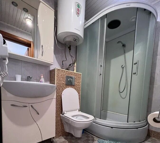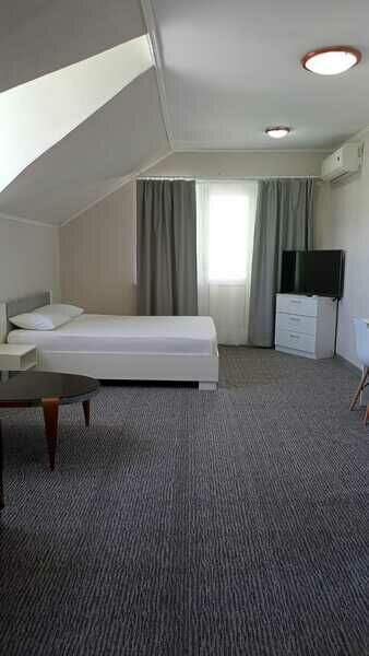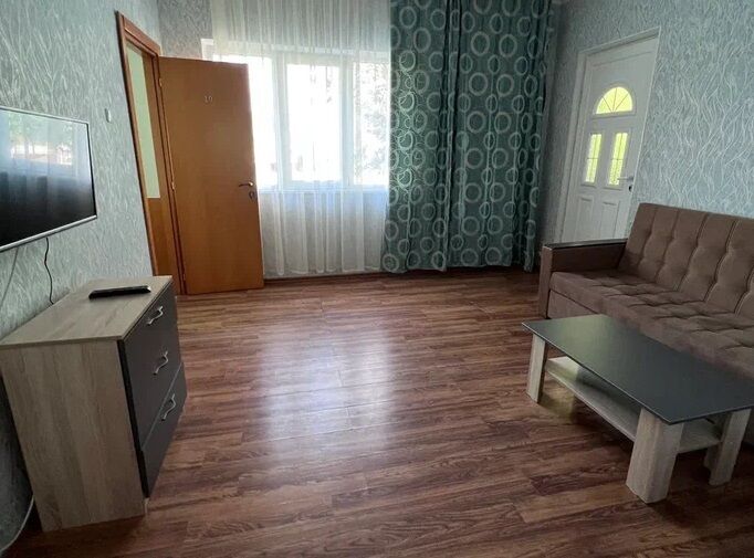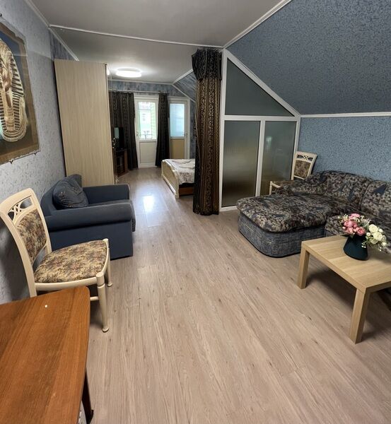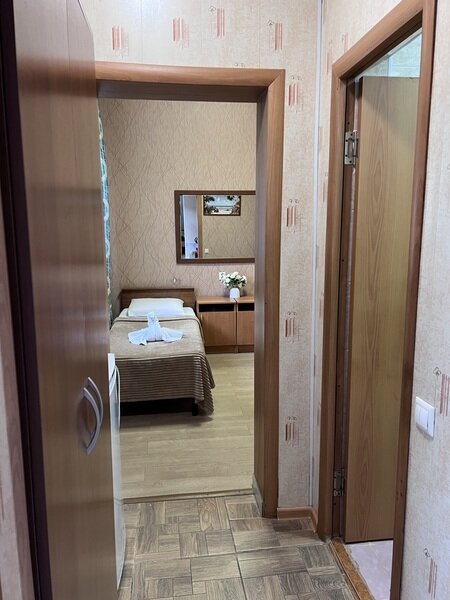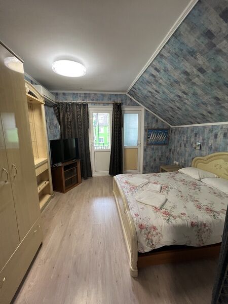 спальные места: двуспальная кровать, диван-кровать; собственный внешний с/у напротив номера, ТВ, Х, К