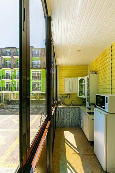 Для удобства отдыхающих в гостевом доме предусмотрены две общих кухни, где можно самостоятельно приготовить еду, есть мангал для шашлыков и уютные зоны отдыха. Дети могут весело провести время на игровой площадке, а родителям малышей администрация предоставляет по запросу кроватки-манежи и стульчики для кормления.