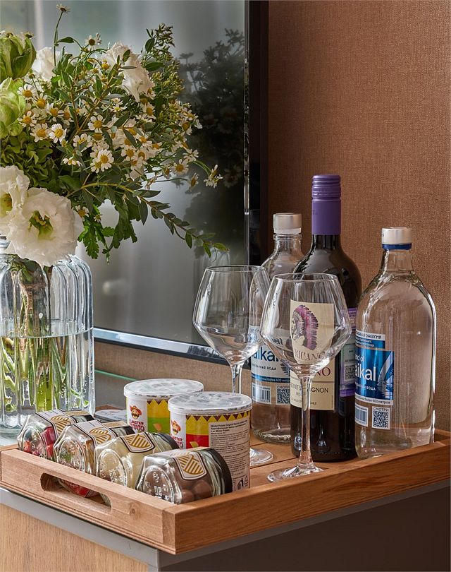 Большой уютный двухкомнатный номер (спальня и гостиная) с индивидуальным дизайном (без балкона) Ванная комната оснащена душевой кабиной. Для удобства в ванной комнате имеется фен и косметические принадлежности: шампунь, кондиционер, гель для душа, мыло, косметический набор. Для Вашего комфорта в номере есть махровый халат и мягкие тапочки. В номере есть чайная станция и кофе-машина с кофейными капсулами от Julius Meinl, мини-бар с алкогольными и безалкогольными напитками, корзина искушений с выбором снеков премиального качества, бесплатный Wi-Fi и кондиционер. Для гостей, выбирающих номера повышенной комфортности посещение SPA-центра (сауна, хамам, соляная пещера, зал релаксации) предоставляется комплиментарно в утренние и дневные часы (сеансы: 10:00, 12:00, 14:00, 16:00). *Дизайн и оформление номеров может отличаться от указанных на фотографиях ** Обратите внимание, что номера могут находиться на нижних этажахУслуги и удобства