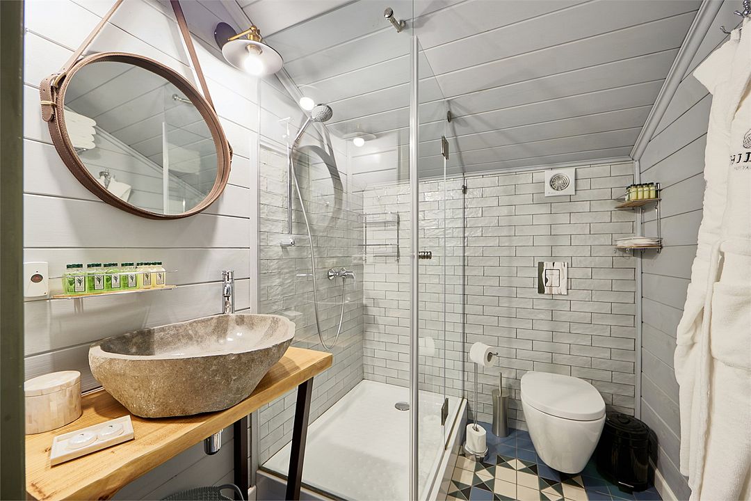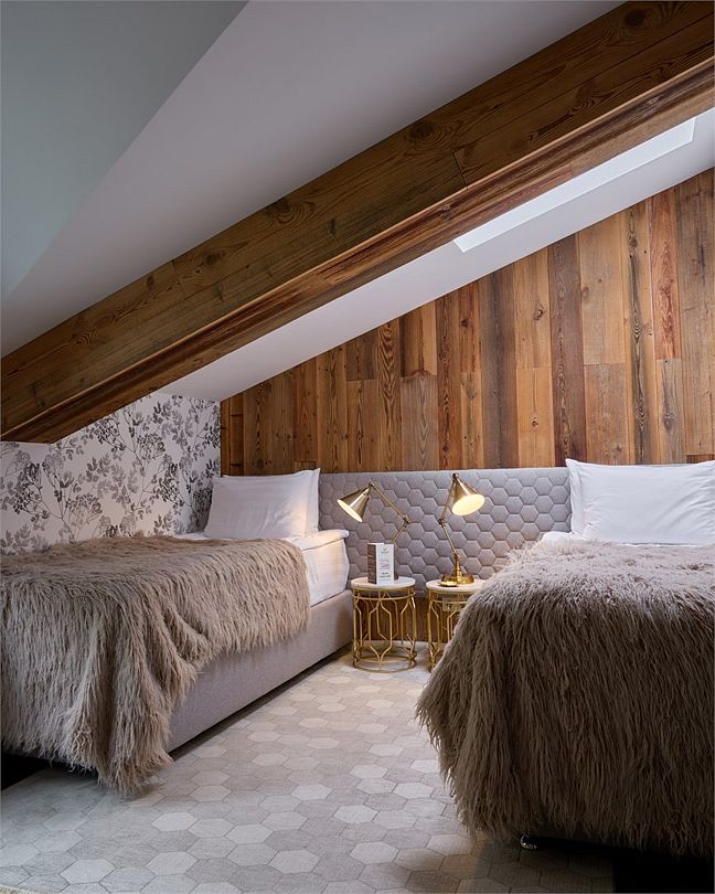 Wi-Fi, кондиционер, фен, весы, электронные замки, утюг, ванна, теплый пол, халаты, банные полотенца, тапочки, косметические средства, две односпальные или большая двуспальная кровать, гладильная доска, тумбы, стулья, вешалки, зеркало, мини-бар, чайный набор, обслуживание номеров, сейф, раковина, питьевая вода, отопление, ламинат, меню подушек, стаканы, туалет, внутренний телефон, телевизор с плоским экраном, мансардные окна, номер для некурящих, вид на лес, собственный бассейн, чайная станция, можно с питомцамиВ гостиничном номере