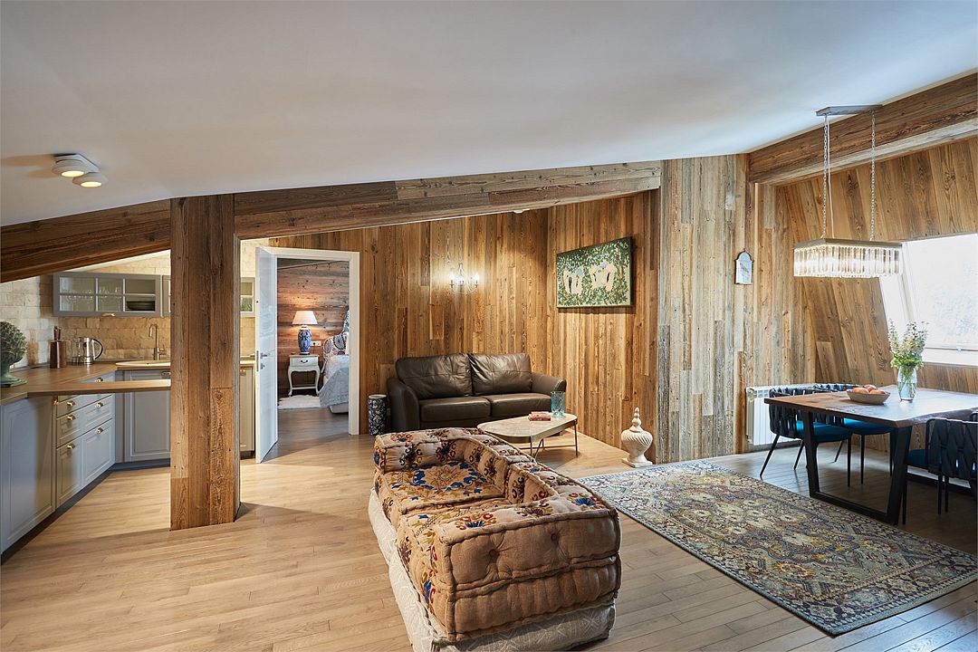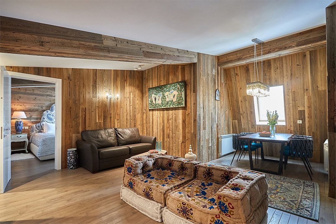два телевизора, спутниковое телевидение, Wi-Fi, холодильник, кондиционер, светильник, настольные лампы, фен, весы, электронные замки, кофемашина, микроволновая печь, утюг, душевая кабина, теплый пол, халаты, банные полотенца, тапочки, гигиенические средства, косметические средства, гладильная доска, диван, тумбы, гардеробная, вешалки, журнальный столик, обеденный стол, зеркало, комод, ковер, эксклюзивная мебель, набор посуды, обслуживание номеров, сейф, чайник, раковина, косметическое зеркало, питьевая вода, обеденная зона, гостиная зона, отопление, две спальни, ламинат, две кровати «King size», меню подушек, стаканы, столовые приборы, две ванные комнаты, тумба, туалетные средства, туалет, диван-кровать, раскладной диван, внутренний телефон, телевизор с плоским экраном, вид на горы, мансардные окна, телевизор со Smart TV, номер для некурящих, общественный бассейн, антикварная мебель, чайная станция, можно с питомцамиВ гостиничном номере