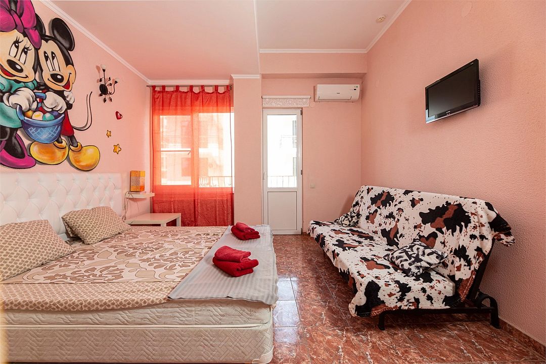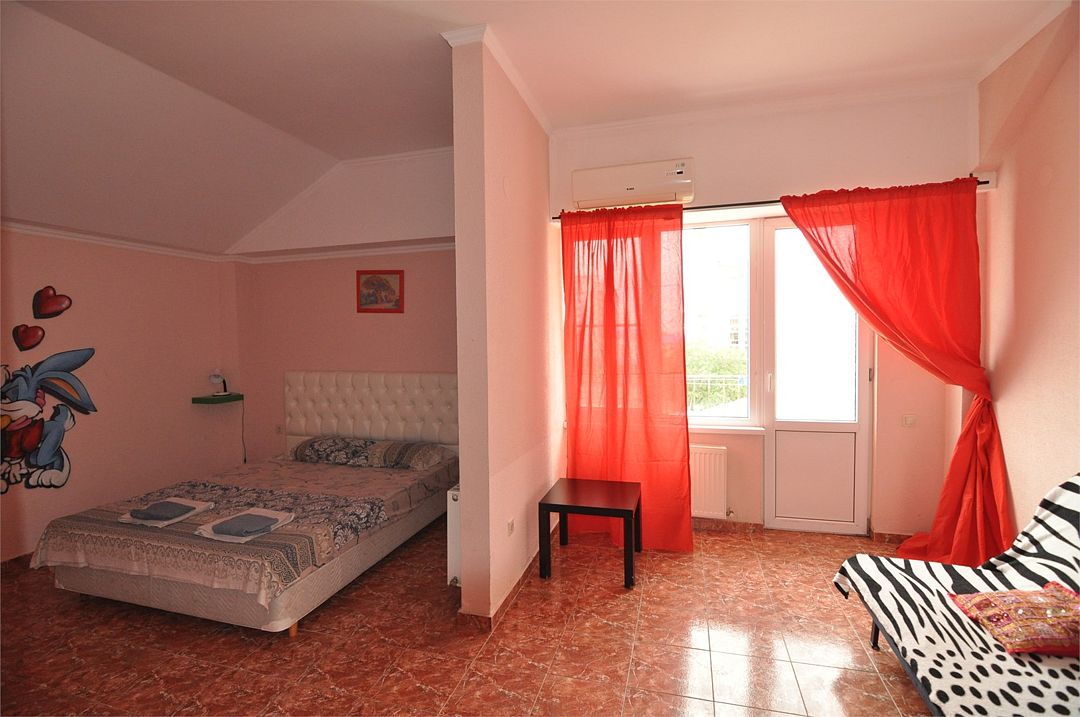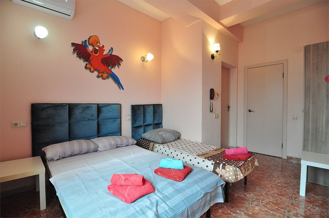 Трехместный номер стандартный с балконом, оборудован двуспальной кроватью и диваном-кроватью.