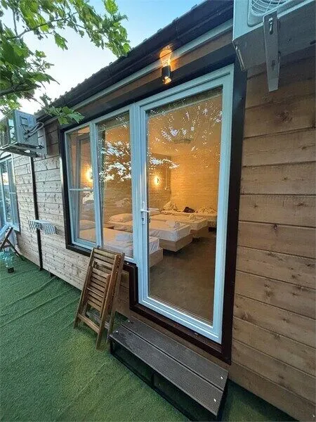 Просторный и современный номер в двухкомнатном деревянном модуле. Отделка и мебель в номере выполнены преимущественно из дерева, создавая уютную и теплую атмосферу. Комнаты в номере раздельные. Кроме того, в номере есть собственный санузел с душем, где вы сможете освежиться после насыщенного дня.