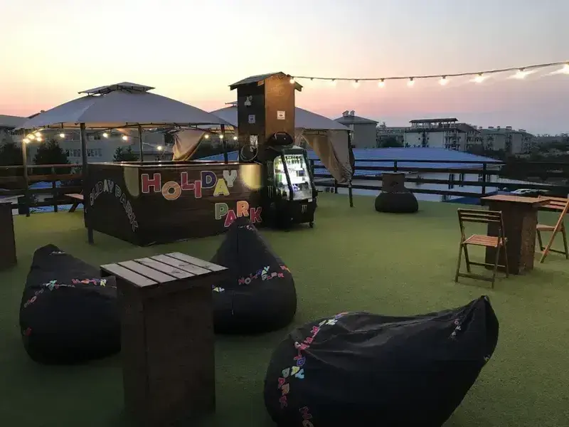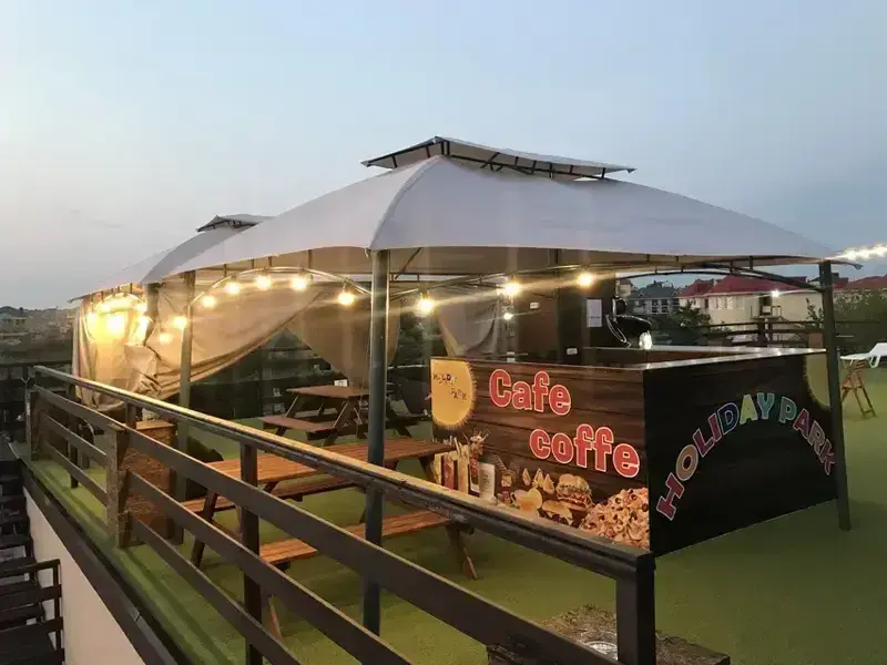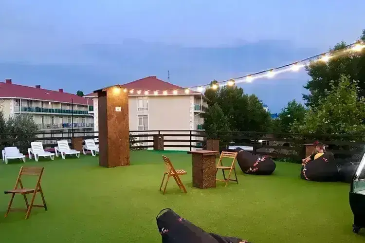 На крыше отеля оборудована уютная терраса-бар, где гости могут приятно провести время. Особенно прекрасен вид летним вечером, когда можно любоваться закатом под приятную музыку. К вашим услугам удобные кресло-мешки, где можно расположиться с ароматным чаем. Бар работает до 23:00, предлагая гостям расслабляющую и комфортную атмосферу отдыха.