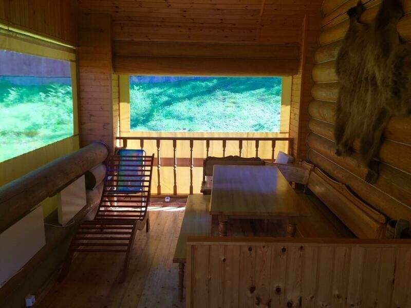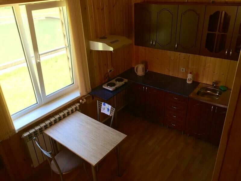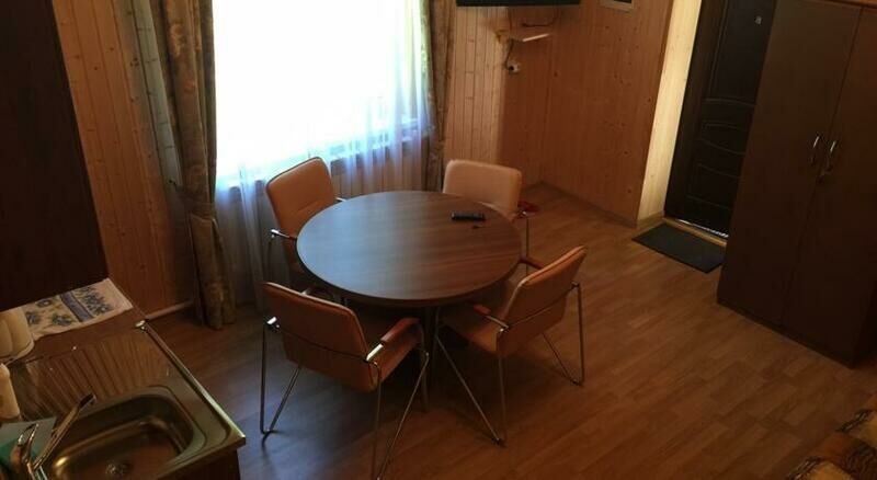 Удобства в шале: Телевизор, Утюг, Гладильные принадлежности, Гостиный уголок, Стиральная машина, Отопление, Отдельный вход, Деревянный/Паркетный пол, Москитная сетка, Шкаф/гардероб, Вешалка для одежды, Раскладная кровать, Диван-кровать, Туалет, Ванная комната, Мини-кухня, Холодильник, Кухня, Обеденный уголок, Электрический чайник, Кухонные принадлежности, Плита, Обеденный стол.