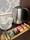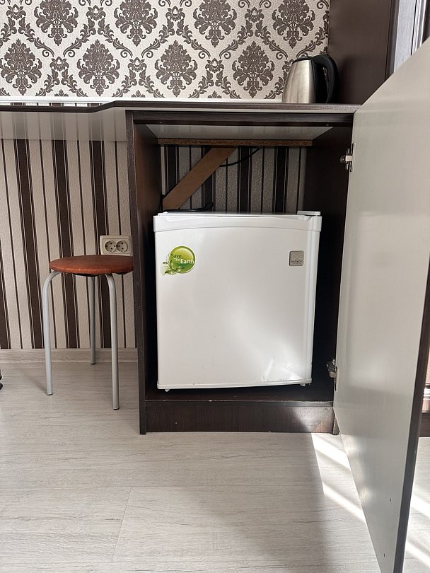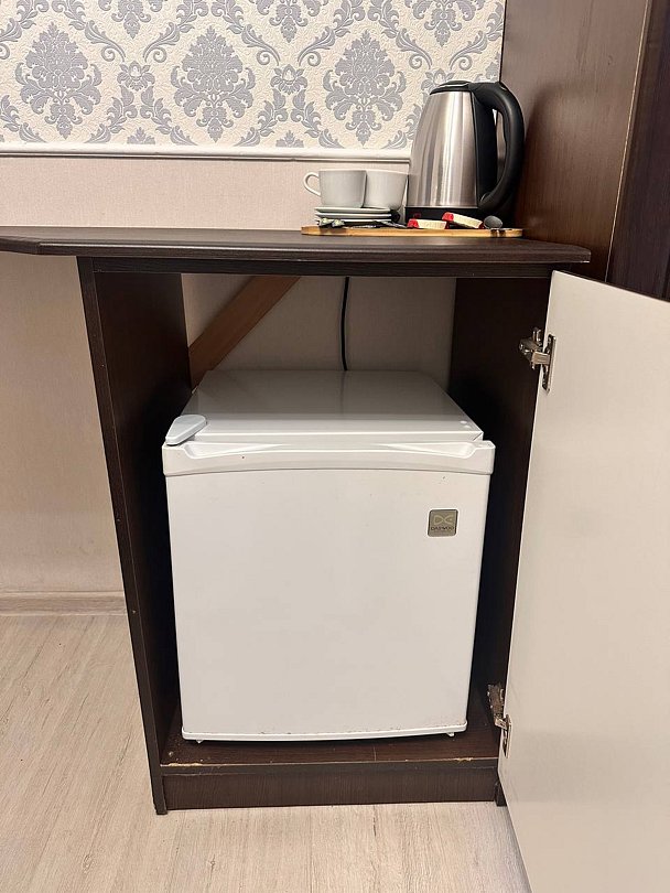 - чайная зона (мини‑холодильник, чайник, посуда);