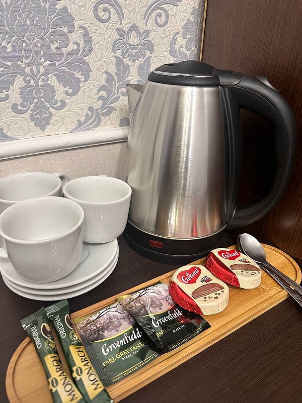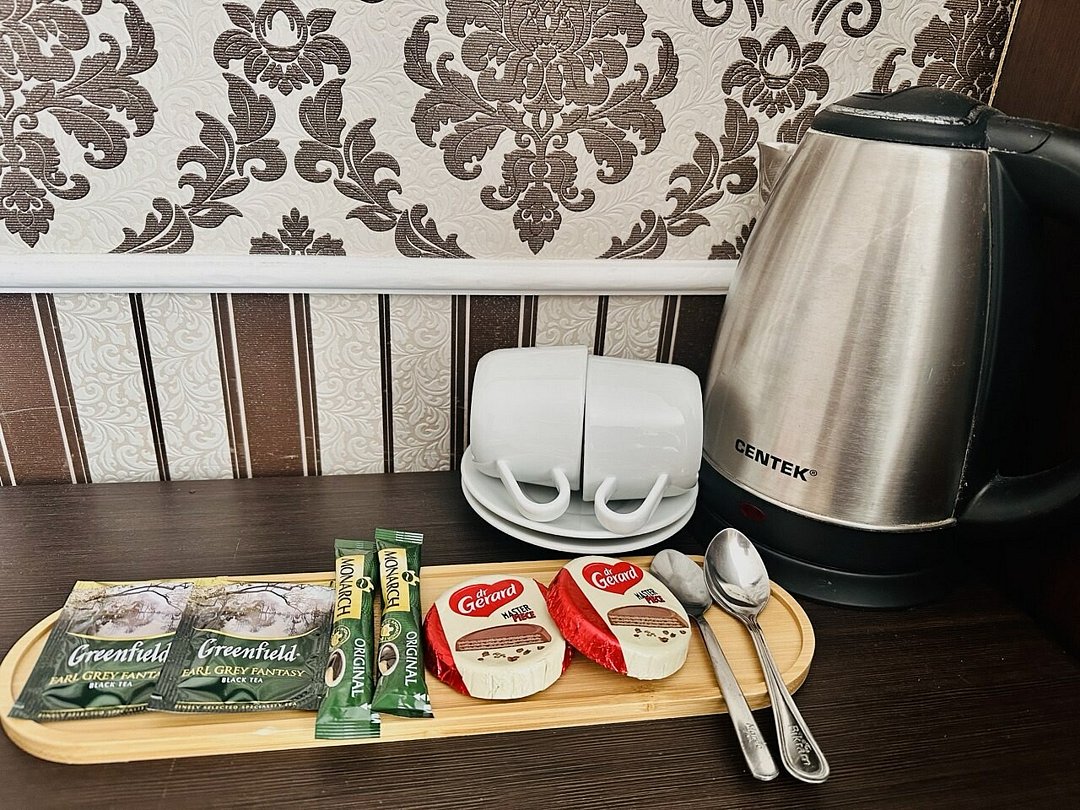 - чай/кофе, сахар, конфеты — комплимент от отеля;
