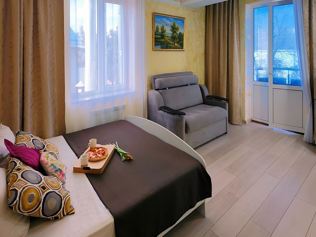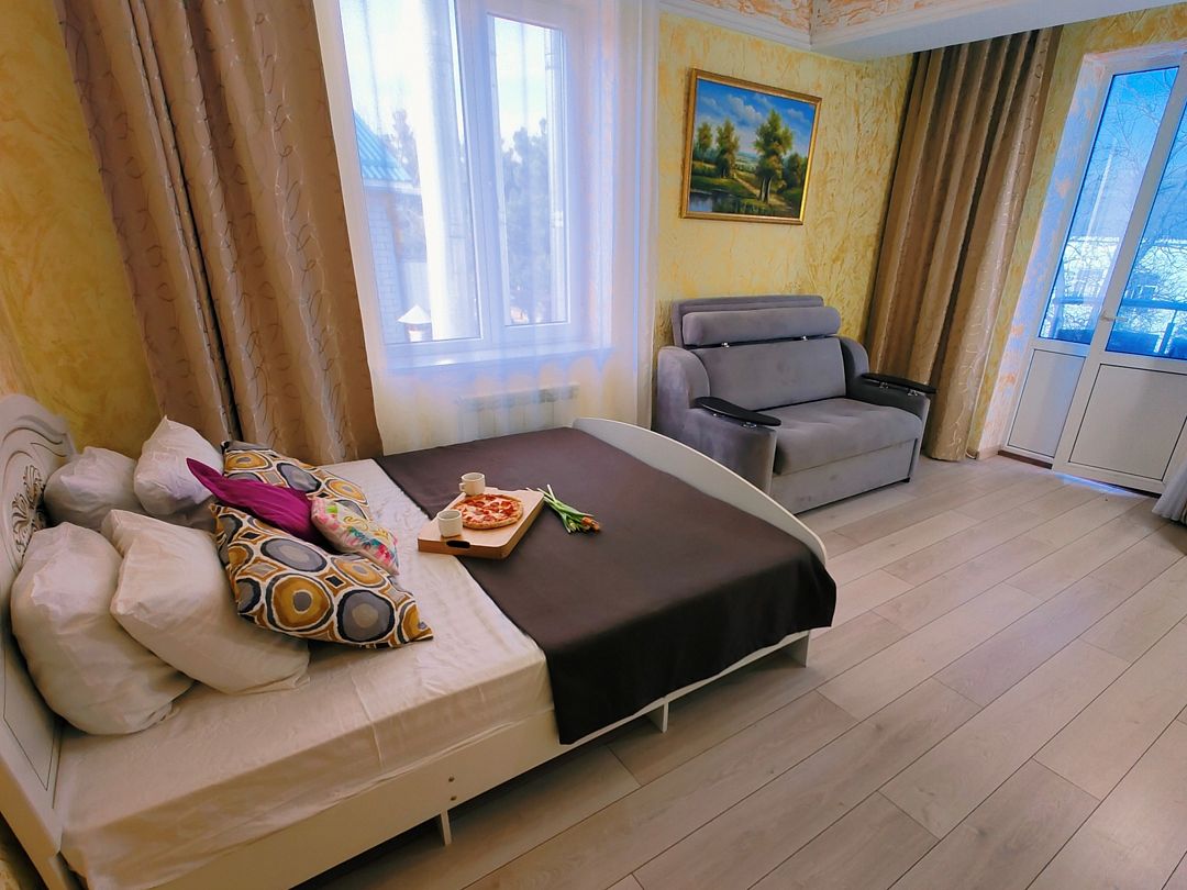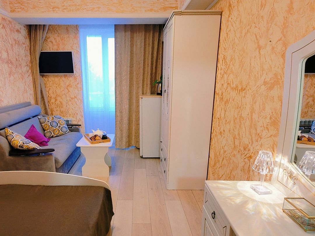 Четырехместная студия с мини-кухней и французским балконом.