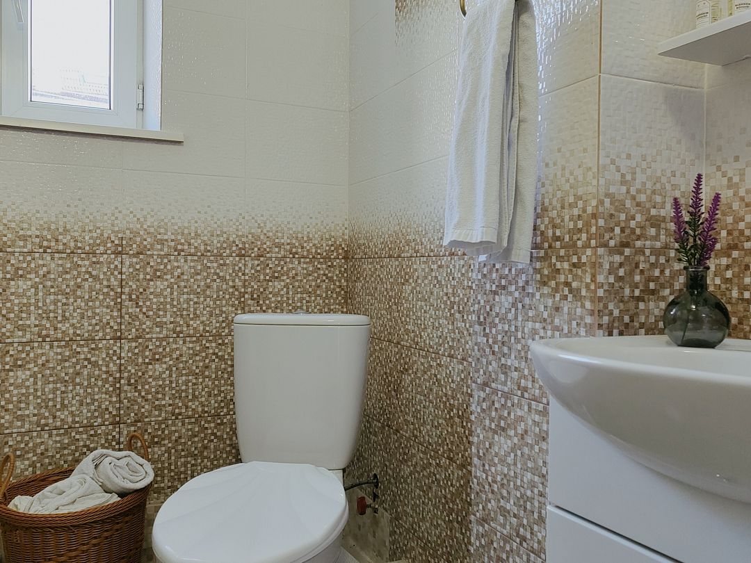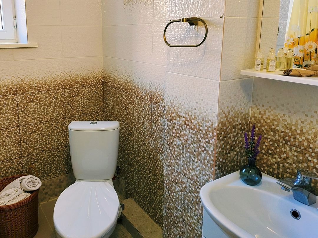 В номере две ванные комнаты, оснащенные: душевой кабиной, раковиной, унитазом, зеркалом, феном, косметическими принадлежностями.