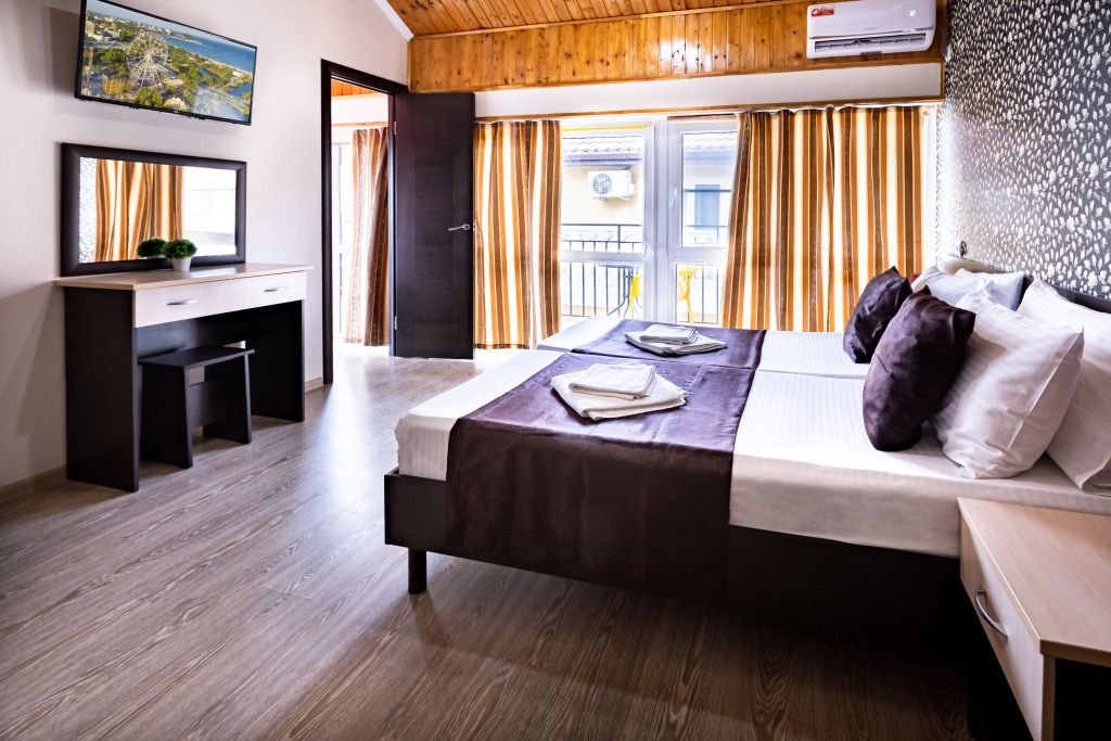 Чтобы вы могли отдохнуть после долгого дня, в номере есть телевизор. Оснащение зависит от выбранной категории номера.