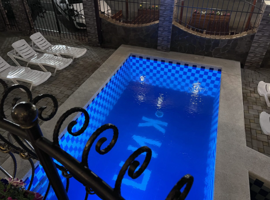 Тип бассейна: открытый бассейнВода в бассейне: подогреваемый бассейнРядом с бассейном: шезлонги, полотенцаПериод работы: летний сезонИдеальное решение, чтобы охладиться в жаркий летний день, а рядом, для любителей солнечных ванн, можно расположиться на шезлонгах и спокойно отдохнуть.Вода в нем всегда теплая и кристально чистая.