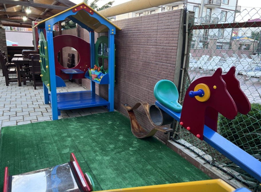 На территории отеля есть детская площадка для детей любого возраста - качели, домики и море эмоций! И даже ходить никуда не надо, ведь все это в одном месте!