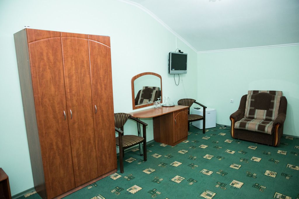 В номере гостей ждут телевизор и халат. Оснащение зависит от выбранной категории номера.