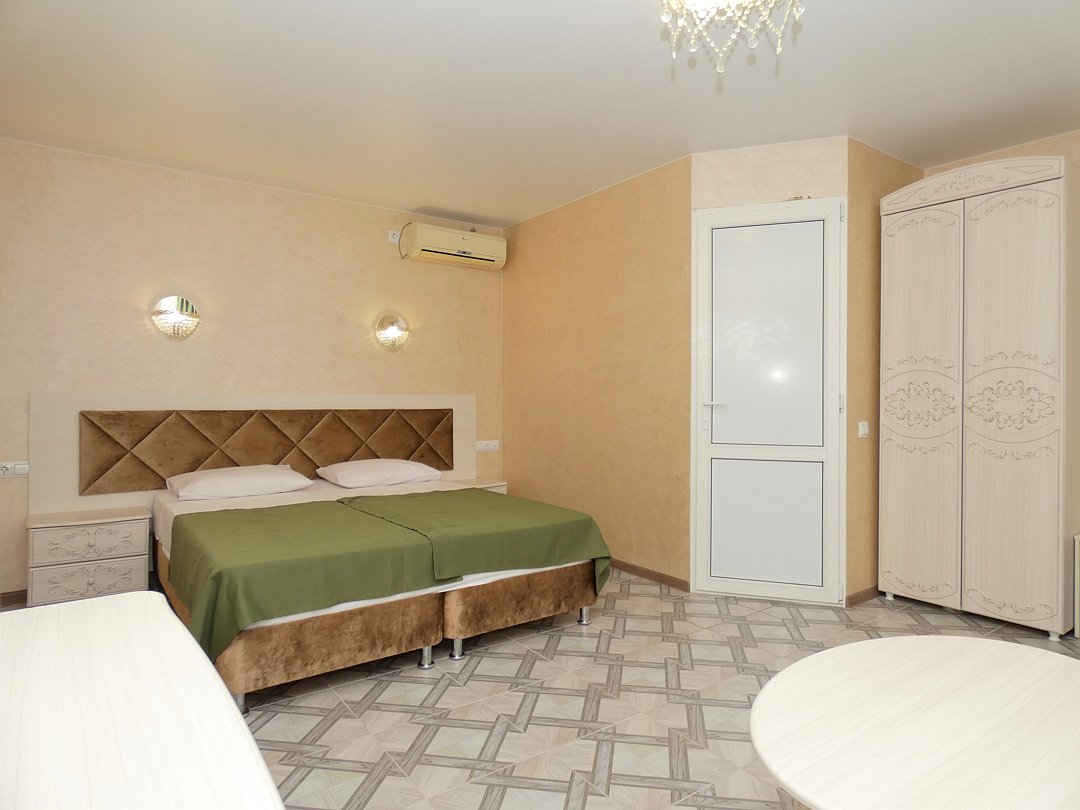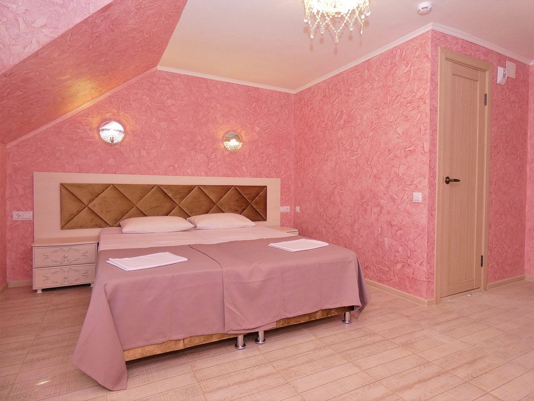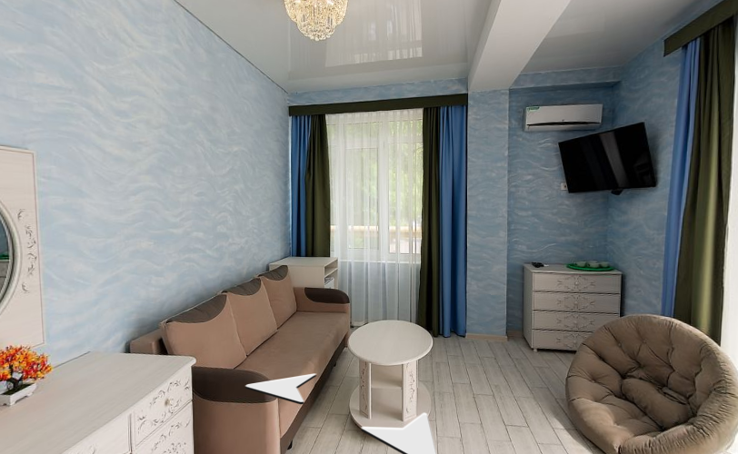 Четырехэтажное здание вмещает номера с различным уровнем вместимости, есть 2-х комнатные номера и номера с кухней. В каждом номере меется кондиционер, телевизор, холодильник, санузел с дешем и Wi-Fi.