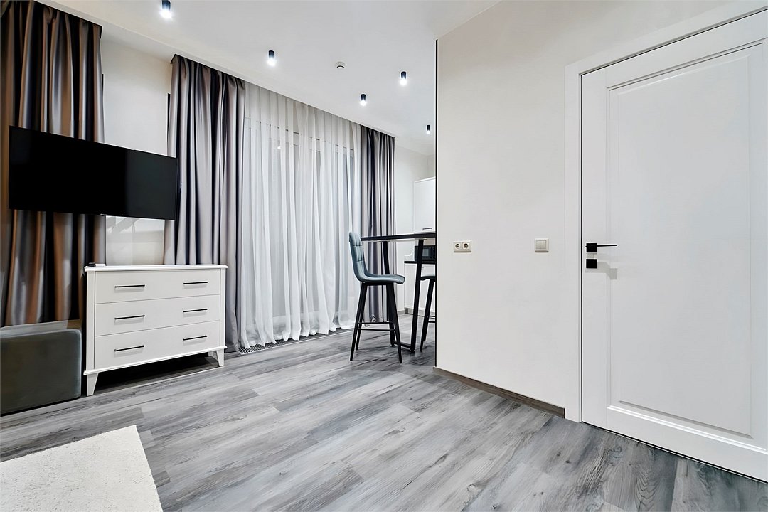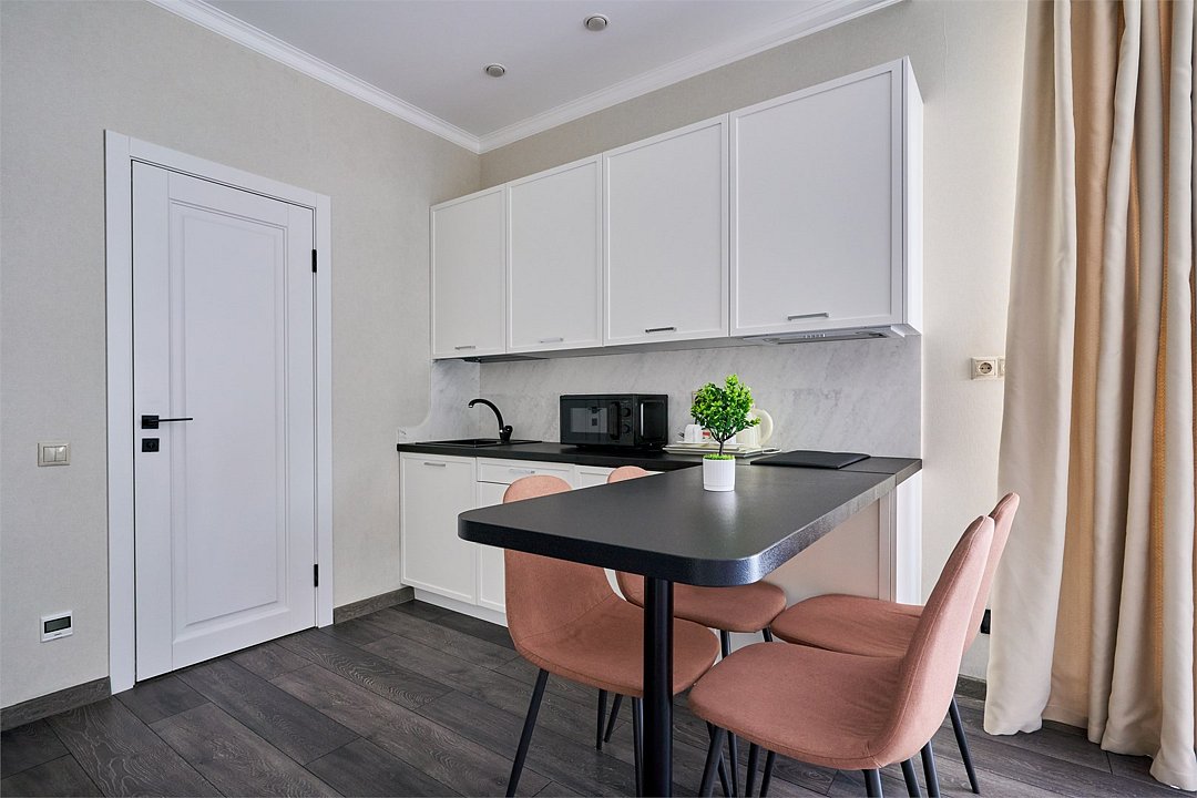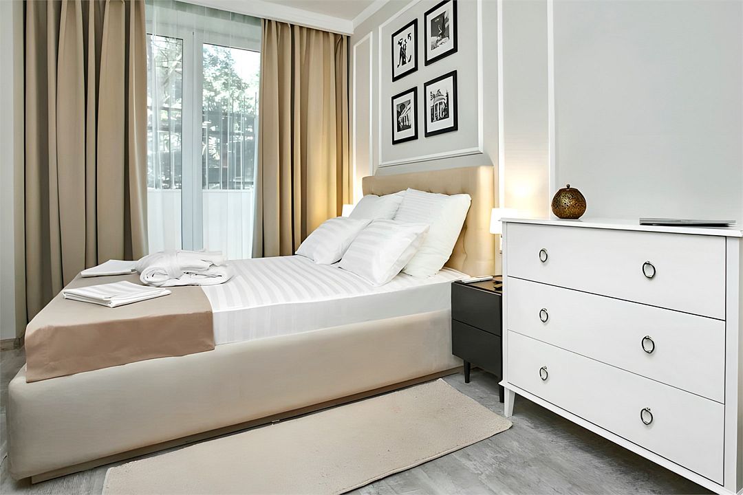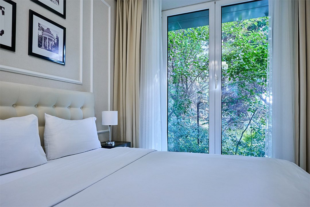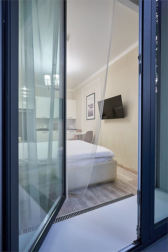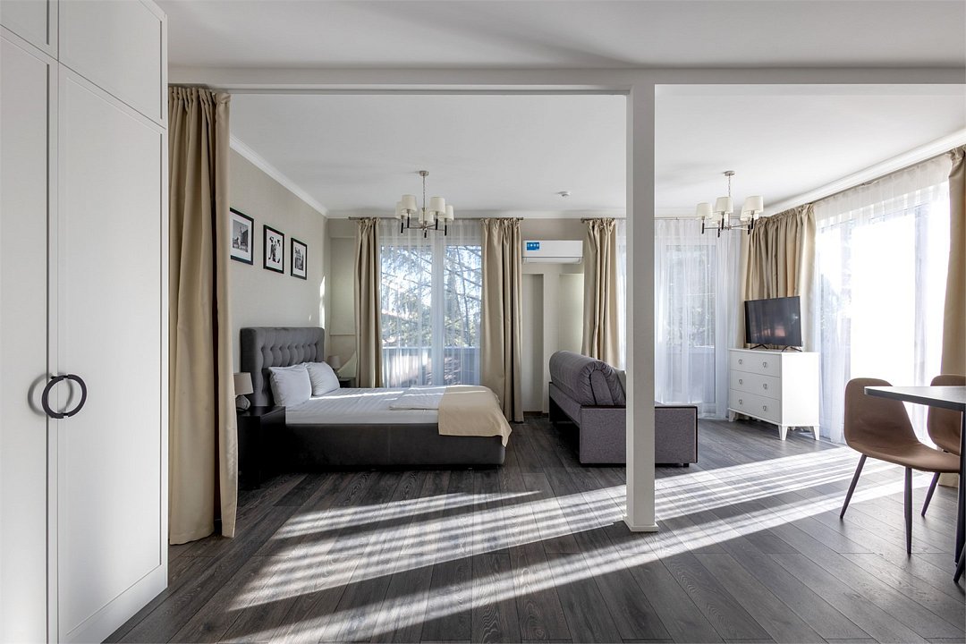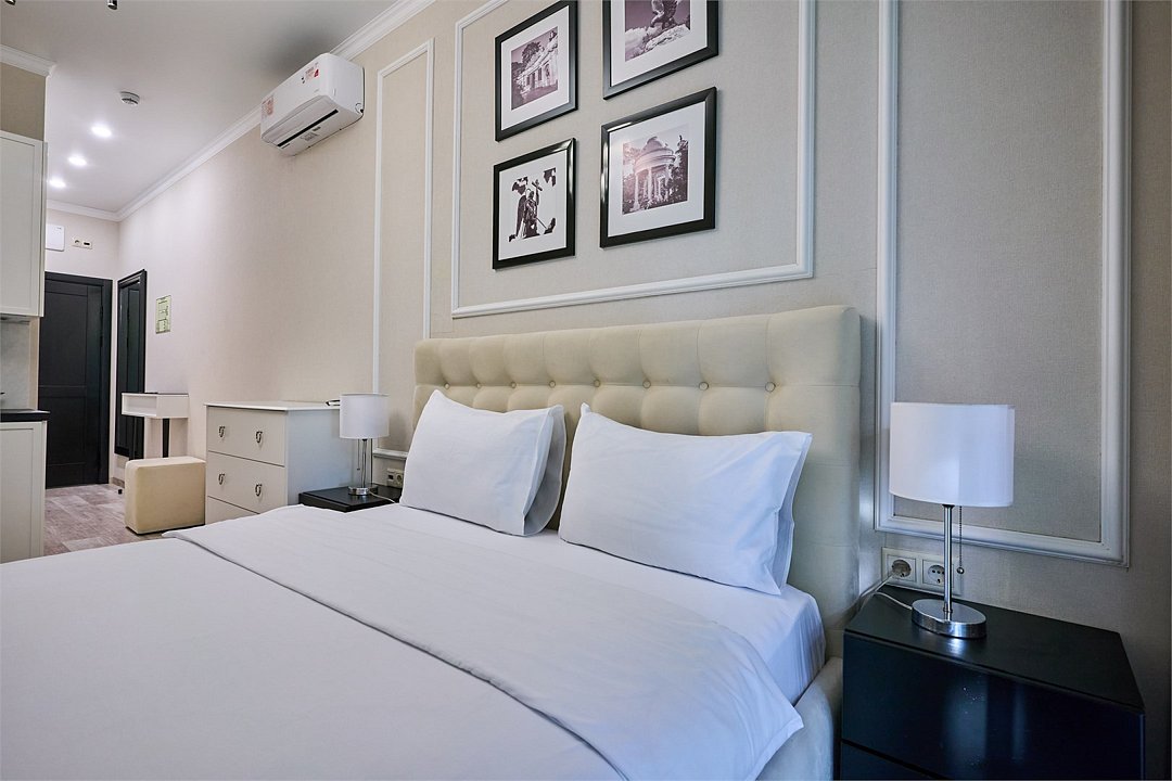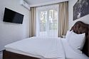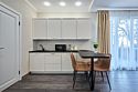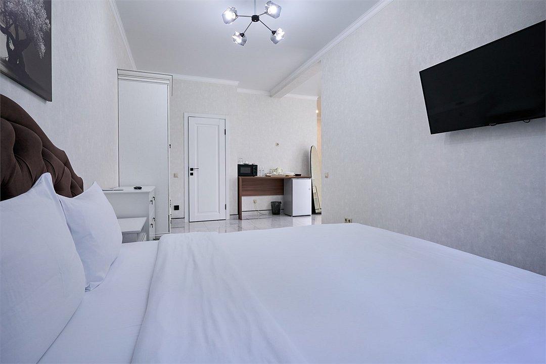 Светлые, стильные и комфортабельные студии с приятным видом на субтропические деревья. Все номера с мини кухнями. В номерах есть всё необходимое для комфортного проживания, включая микроволновую печь и стиральную машину. Почти все номера данной категории расположены на втором этаже. Площадь номера 23 - 25 кв.м. В номере есть телевизор, электронный сейф, стол, пуфики и прикроватные тумбочки. Ванная комната с раковиной, ванной / душевой кабиной, также имеются индивидуальные наборы косметических средств для гостей. Комфортную температуру обеспечивает сплит система кондиционирования. *Кровати в номере имеют фиксированную конструкцию и не могут быть трансформированы в односпальные. *Обращаем ваше внимание, что варочные поверхности в номерах не функционируют.Услуги и удобства