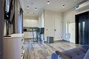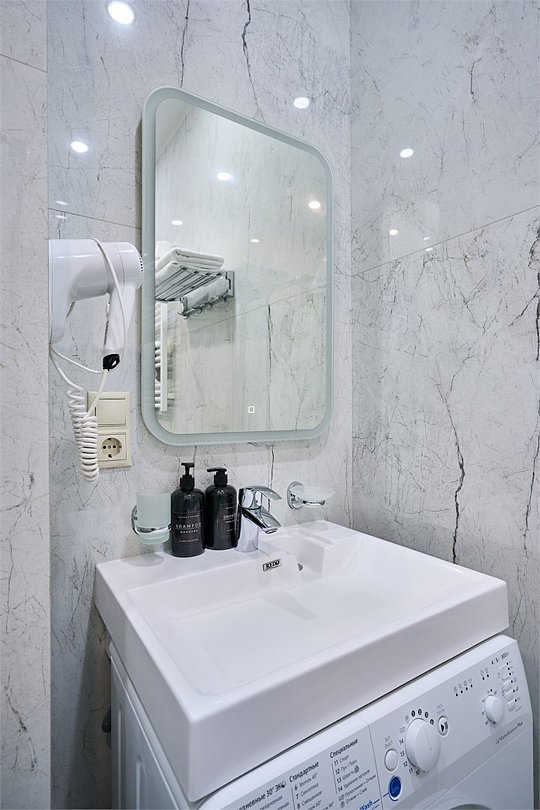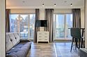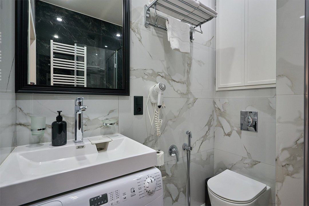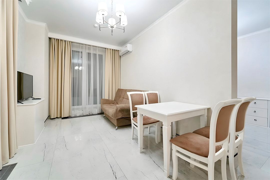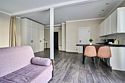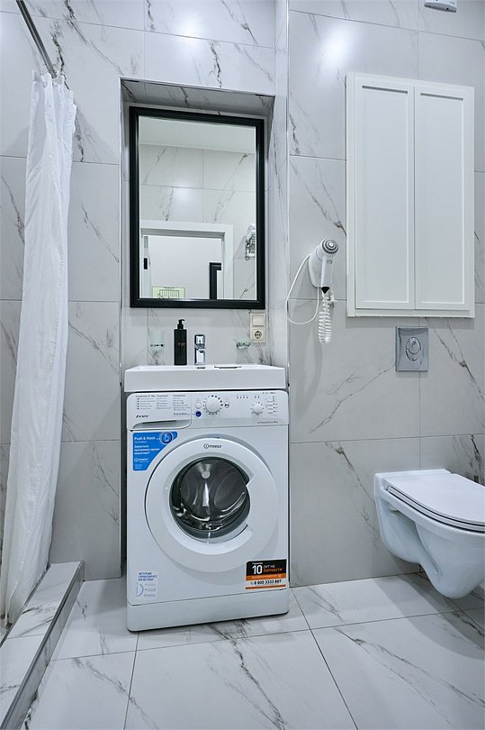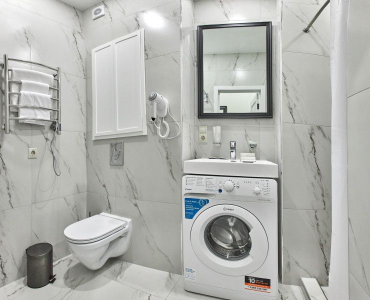 Прекрасный комфортабельный номер с кухней, гостиной зоной и спальней. В номере есть всё необходимое для комфортного проживания и отдыха: диван, барная стойка, микроволновая печь и стиральная машина. А из панорамных окон номера открывается вид на Курортный проспект. В номере есть телевизор, электронный сейф, стол, пуфики и прикроватные тумбочки. Ванная комната с раковиной, душевой кабиной, также имеются индивидуальные наборы косметических средств для гостей. Комфортную температуру обеспечивает сплит система кондиционирования. *Кровати в номере имеют фиксированную конструкцию и не могут быть трансформированы в односпальные. *Обращаем ваше внимание, что варочные поверхности в номерах не функционируют.Услуги и удобства