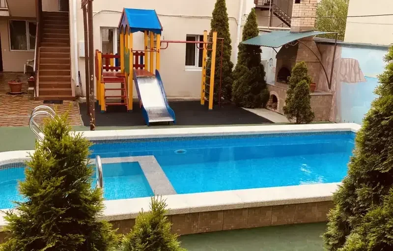 В вашем распоряжении светлые и просторные номера со всеми удобствами, большой ухоженный двор, столовая с вкусной домашней едой, сезонный бассейн с гидромассажем и терраса с шезлонгами для принятия солнечных ванн.