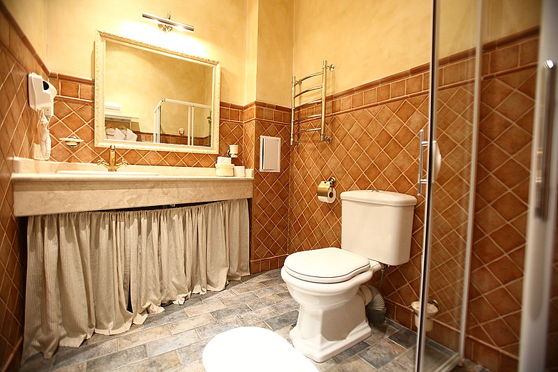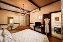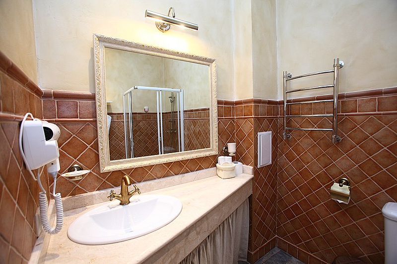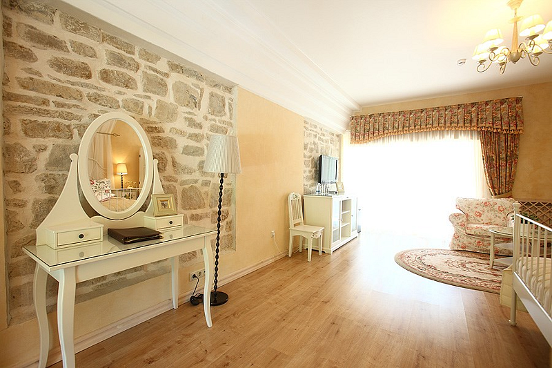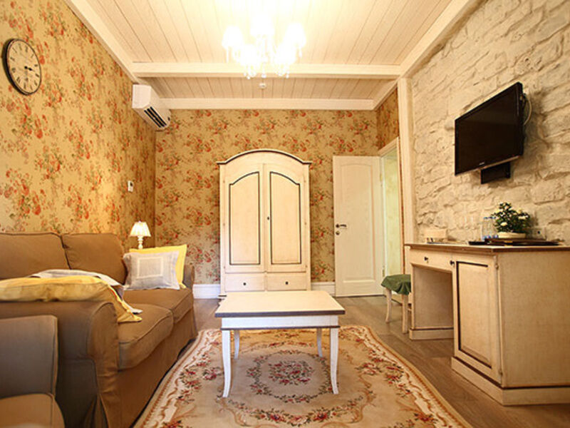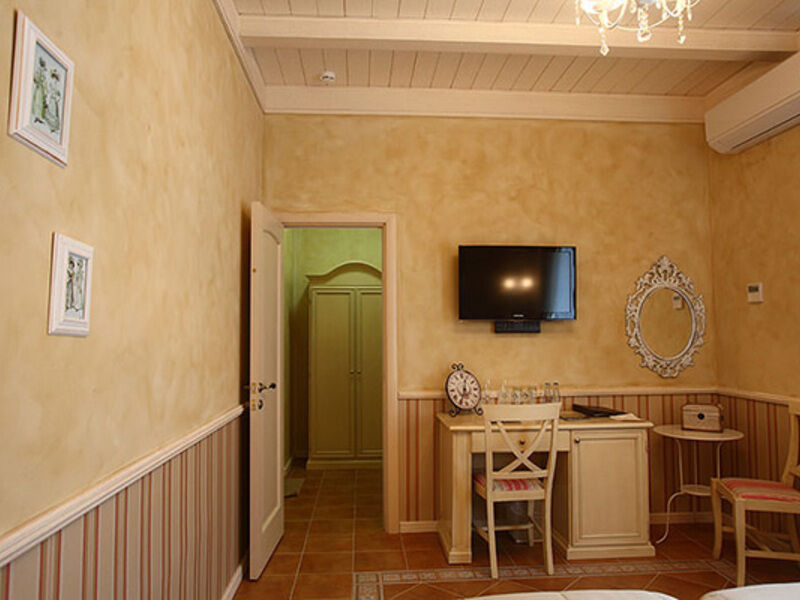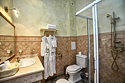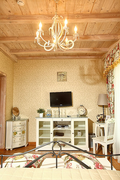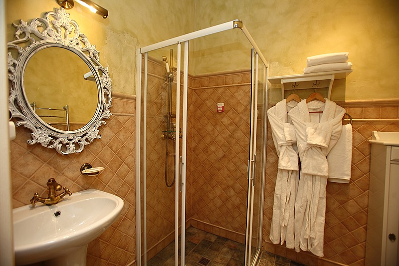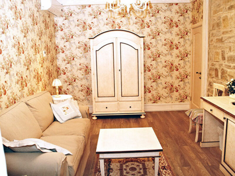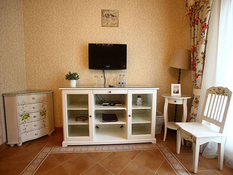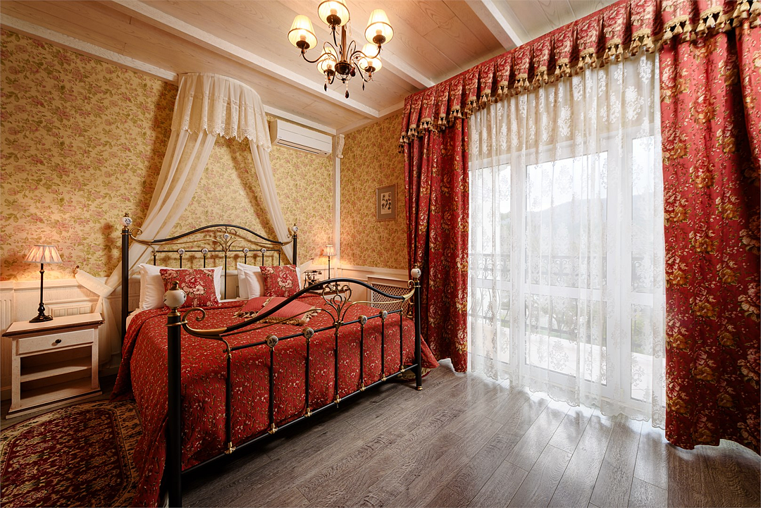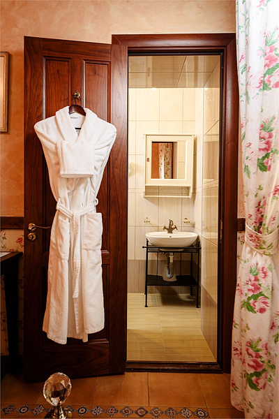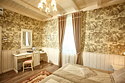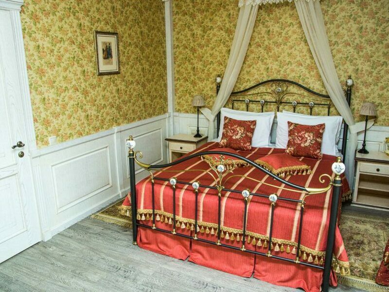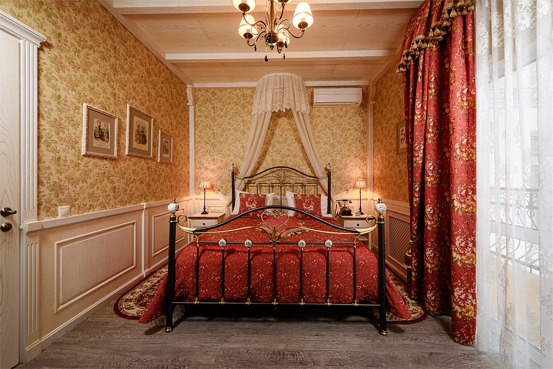 В номерах: 2-спальная кровать с балдахином или без, шкаф, трюмо или рабочий стол, журнальный столик, мягкая мебель, телевизор, мини-бар, сейф, телефон, сплит-система, фен.