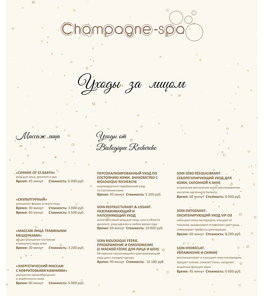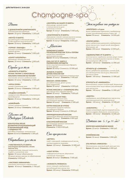 - термальная зона Champagne-spa (с 10:00 до 22:00);