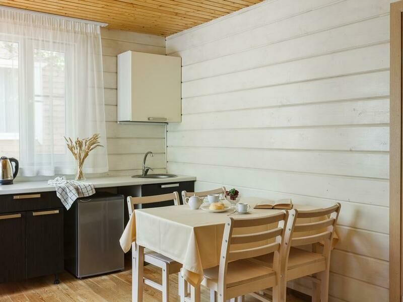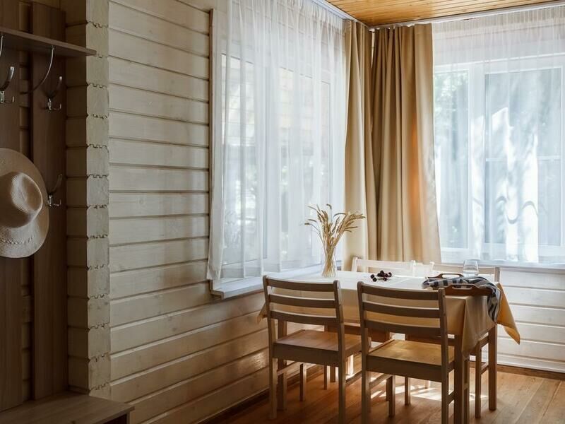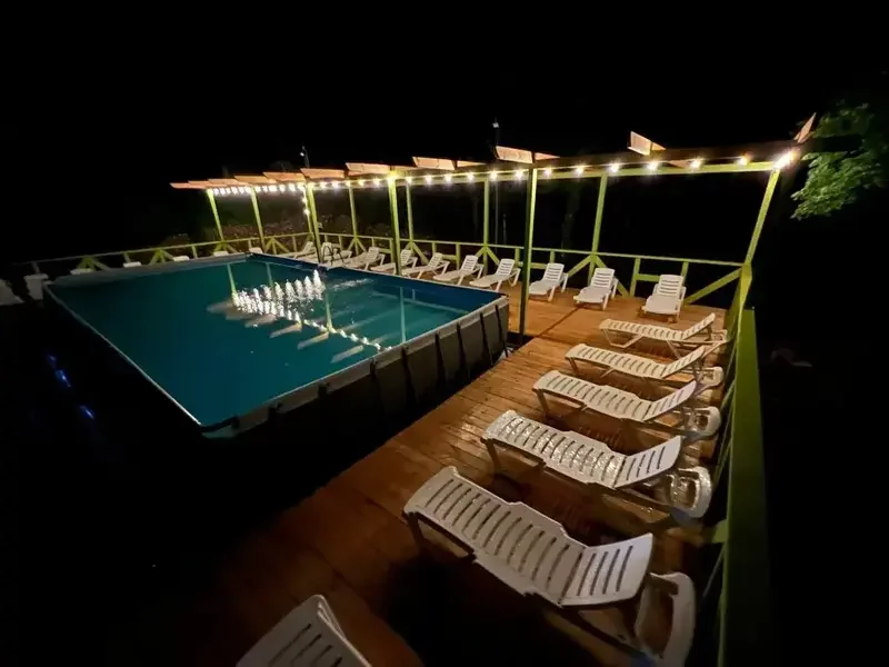 В гостевом комплексе работает кафе, отдыхающие могут провести время у бассейна, на террасе или на спортивной площадке. На территории есть охраняемая парковка, ловит сеть wi-fi, организована детская площадка, а для малышей в зале питания предусмотрены стульчики для кормления.